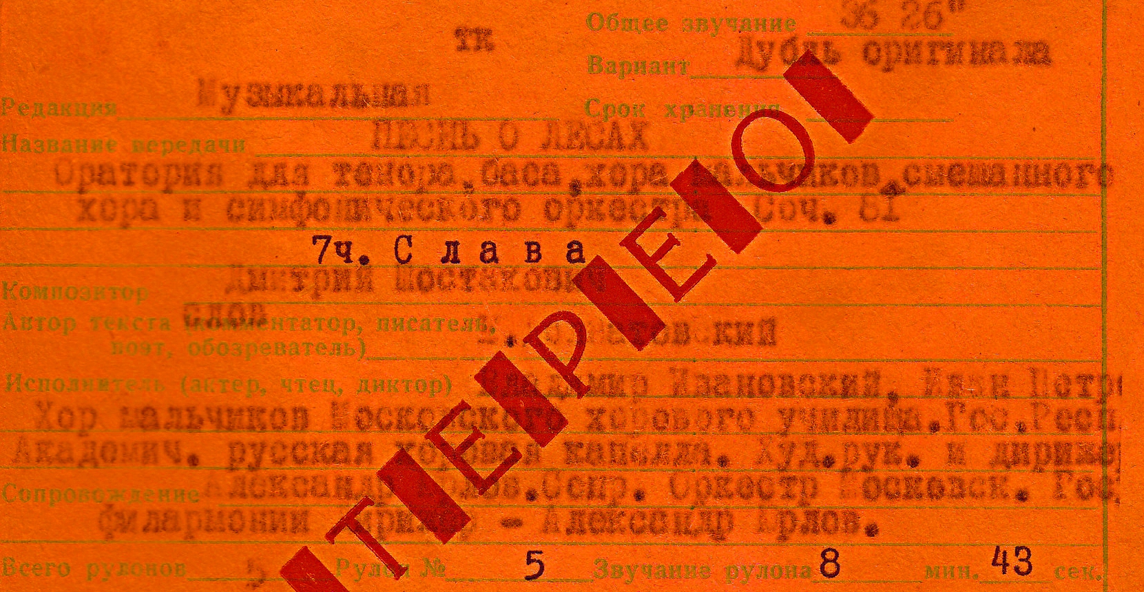 оратории на стихи Евгения Долматовского "Песнь о лесах" !