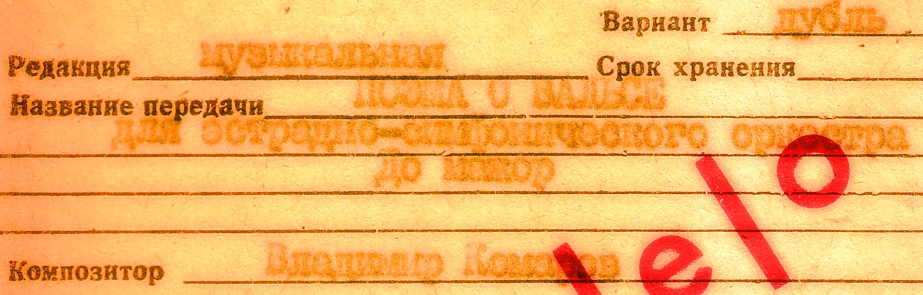 Повстречать эту запись в фонотеках союзных Радиомов можно было редко . Двумя десятилетиями позднее, в 1984-м, был создан наиболее тиражируемый вариант записи оперы в исполнении Солистов, Хора и Духового оркестра Киевского Государственного Академического театра оперы и балета УССР имени Т.Шевченко !