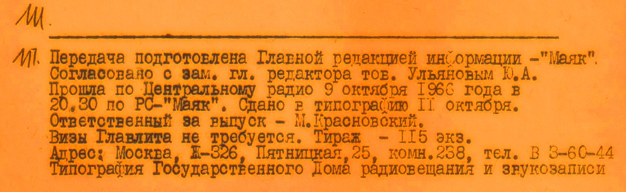 Здравствуйте Дмитрий Валерьевич! Большое Вам спасибо за возможность послушать музыкальные программы Всесоюзного радио!