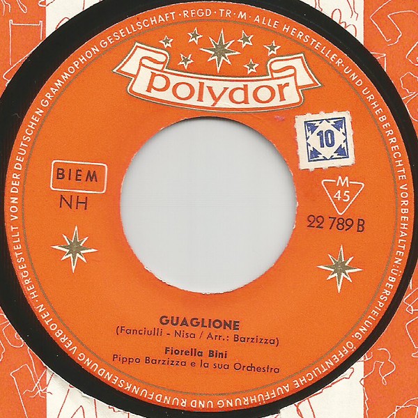 1. Guaglione (муз.Giuseppe Fanciulli - сл.Nicola "Nisa" Salerno) - Fiorella Bini,1955 (выпущена в Oct 1956г. на студии Polydor)