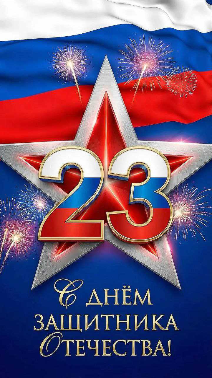 С 23 Февраля, наши дорогие защитники! Этот день напоминает нам о том, что настоящая сила проявляется не только в бою, но и в заботе о близких, помощи друзьям и стремлении к совершенству. Пусть ваша жизнь будет наполнена яркими моментами, удачными решениями и верными товарищами. А бойцам, которые сегодня сражаются за наше мирное небо и нашу мирную жизнь, желаю поскорее вернуться домой к своим семьям с победой, здоровыми и невредимыми! С праздником всех Вас, друзья!