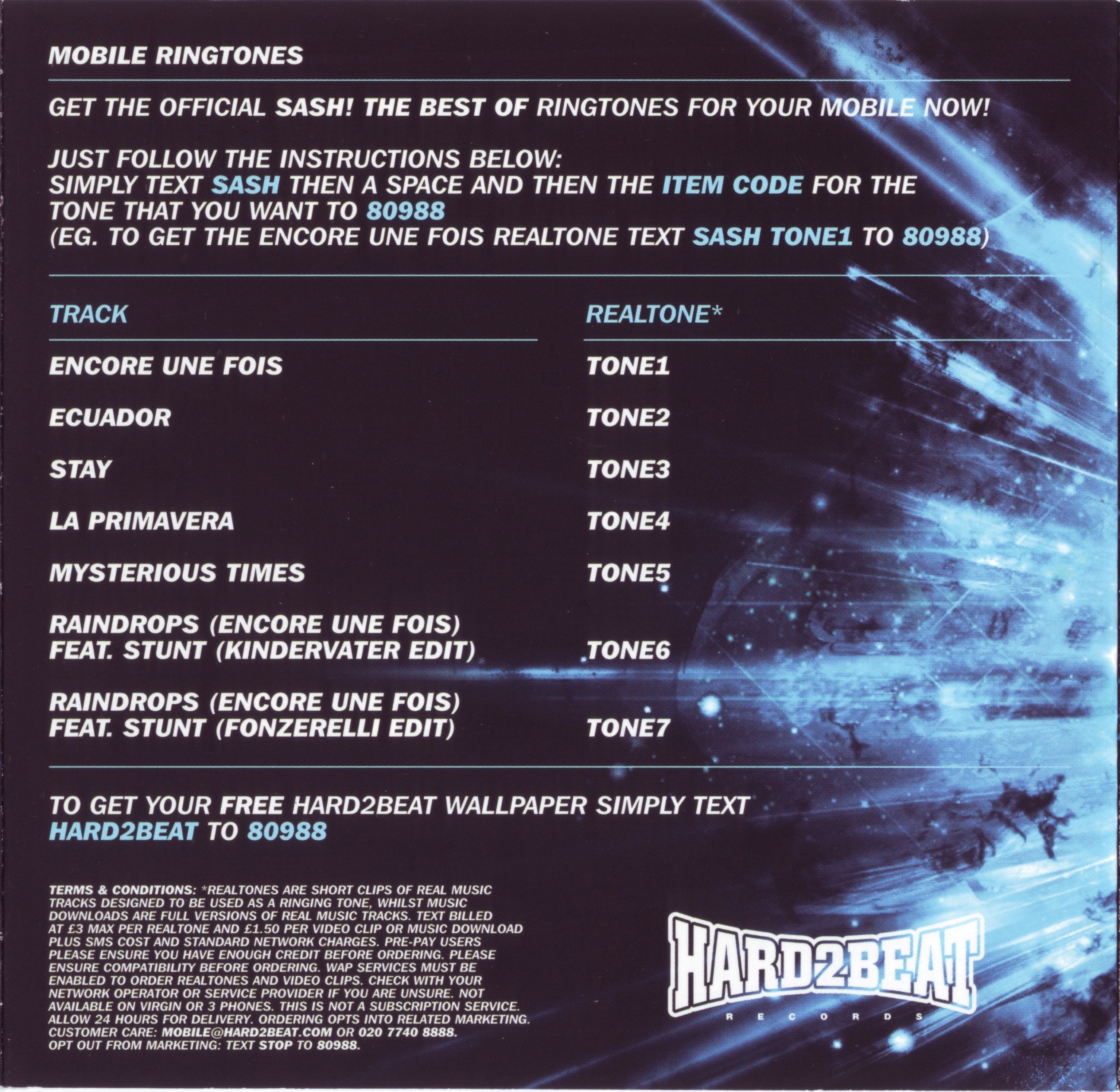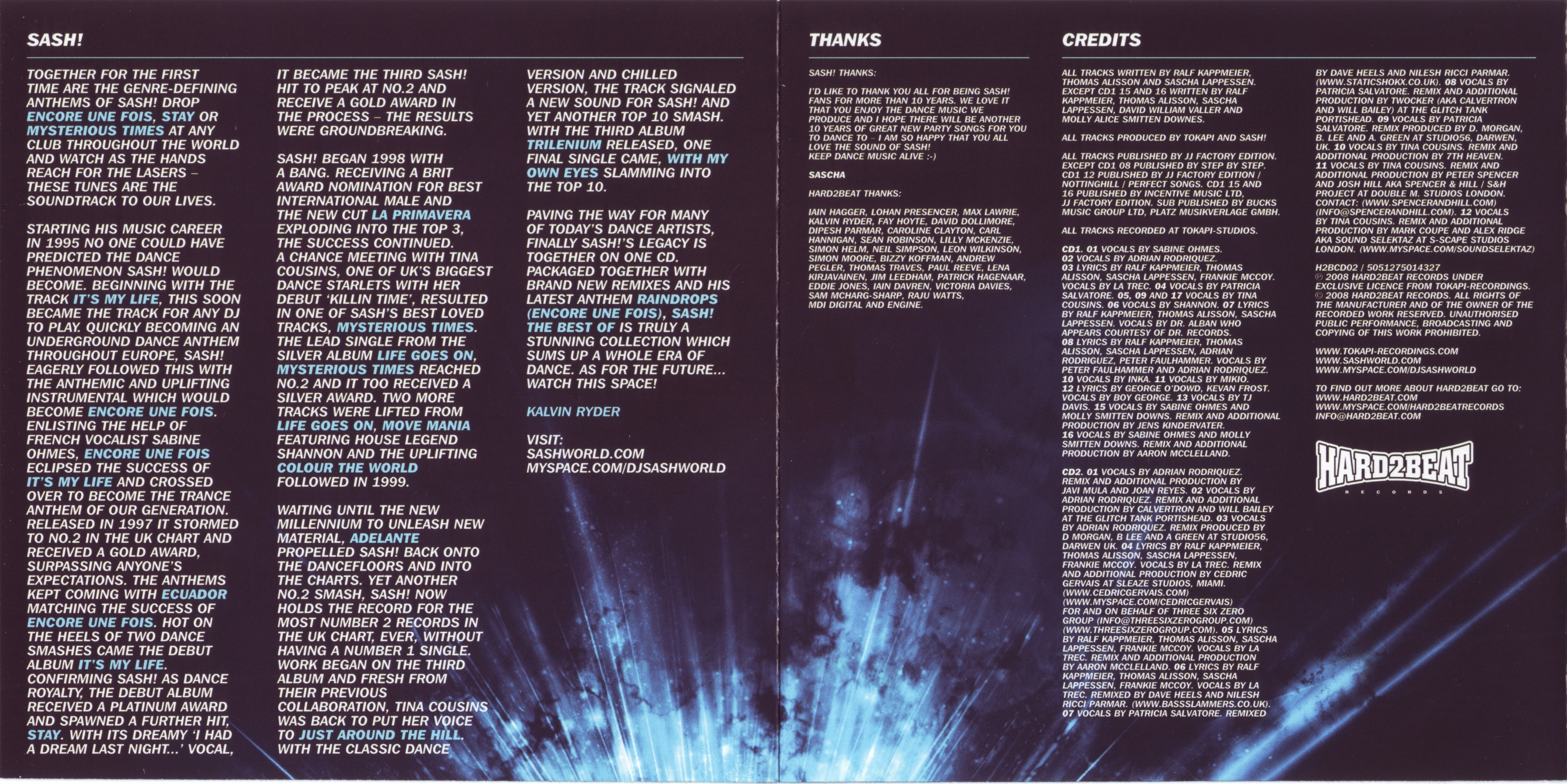 Продолжение альбома: 2008 (CD) Sash! - The Best Of (2CD) (Hard2Beat Records H2BCD02) (UK)