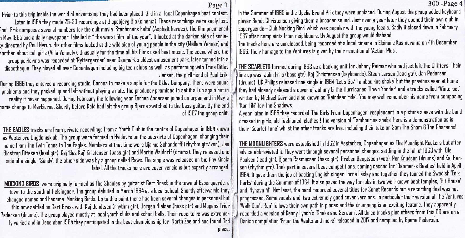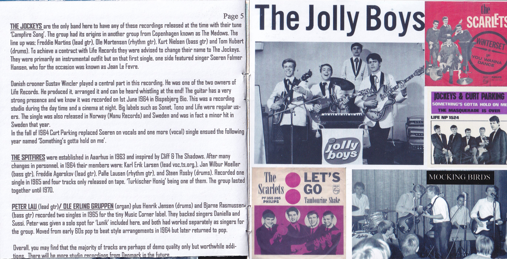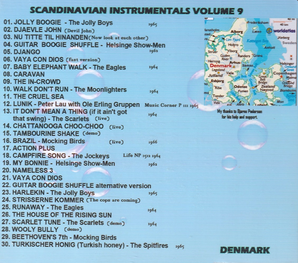 1 The Jolly Boys – Jolly Boogie 2 The Jolly Boys – Djaevle John 3 The Jolly Boys – Nu Titte Til Hinanden 4 Helsinge Show-Men– Guitar Boogie Shuffle 5 Helsinge Show-Men– Django 6 Helsinge Show-Men– Vaya Con Dios (Fast Version) 7 The Eagles – Baby Elephant Walk 8 The Eagles – Caravan 9 The Eagles – The In-Crowd 10 The Moonlighters – Walk Don't Run 11 The Moonlighters ( – The Cruel Sea 12 Peter Lau with Ole Erling Gruppen– Lunik 13 The Scarlets– It Don't Mean A Thing (If It Ain't Got That Swing) 14 The Scarlets– Chattanooga Choo-Choo 15 The Scarlets– Tambourine Shake 16 The Mocking Birds – Brazil 17 The Mocking Birds – Action Plus 18 The Jockeys– Campfire Song 19 Helsinge Show-Men– My Bonnie 20 Helsinge Show-Men– Nameless 3 21 Helsinge Show-Men– Vaya Con Dios 22 Helsinge Show-Men– Guitar Boogie Shuffle (Alternative Version) 23 The Jolly Boys – Harlekin 24 The Jolly Boys – Strisserne Kommer 25 The Eagles – Runaway 26 The Eagles – The House Of The Rising Sun 27 The Scarlets– Scarlet Tune 28 The Scarlets– Wooly Bully 29 The Mocking Birds (2)– Beethoven's 7th 30 The Spitfires – Turkischer Honig