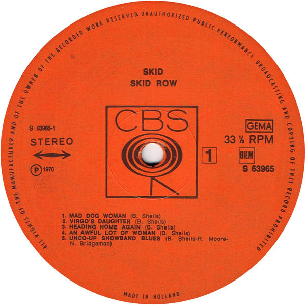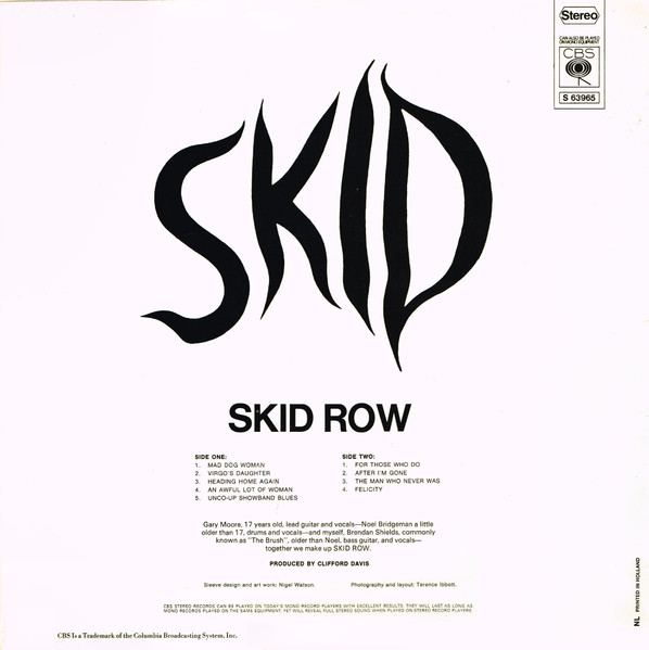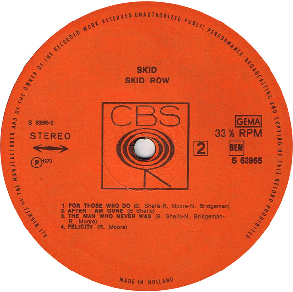 “Skid” - дебютный альбом ирландской блюз-рок-группы Skid Row. Группа, первоначально образованная в 1967 году, с Гэри Муром на гитаре и вокале, стала ключевой частью истории ирландского рока. Skid Row была первой группой, в которой Фил Лайнотт и Гэри Мур играли профессионально, прежде чем обрести большую известность с Thin Lizzy.