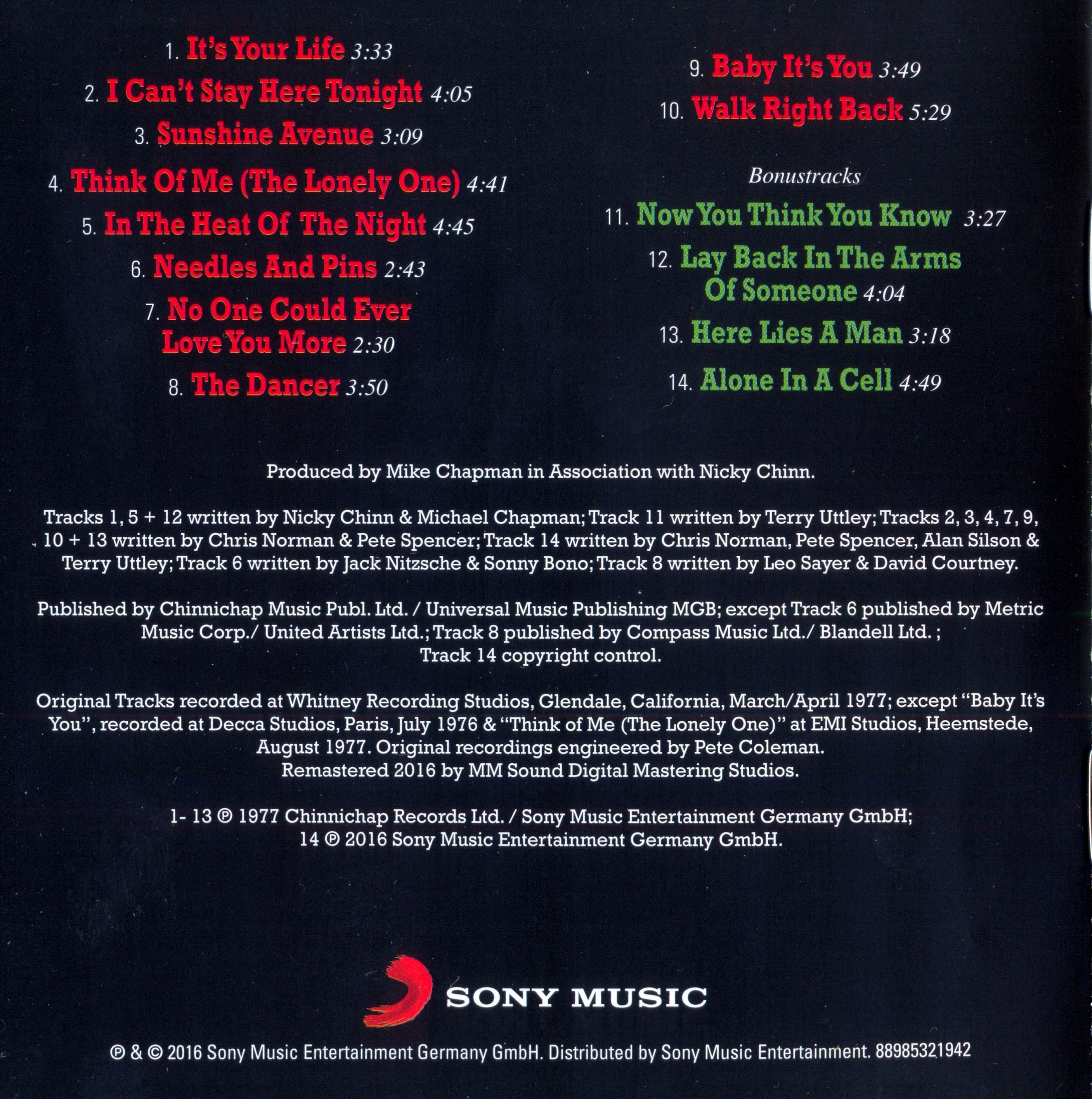 Original Tracks recorded at Whitney Recording Studios, Glendale, California, March/April 1977; except "Baby It's You", recorded at Decca Studios, Paris, July 1976 & "Think of Me (The Lonely One)" at EMI Studios, Heemstede, August 1977. Original recordings engineered by Pete Coleman. Remastered 2016 by MM Sound Digital Mastering Studios.