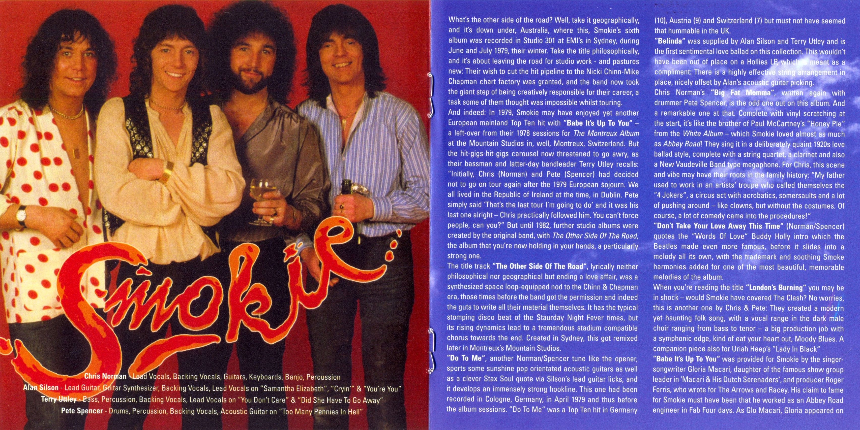 «The Other Side Of The Road» – это первый альбом группы Smokie, целиком состоящий из собственных сочинений и самостоятельно спродюсированный. Единственная здесь не своя песня – “Babe It's Up to You”, да и та создана не Чинном-Чапмэном. На сей раз Smokie ушли от опеки этих замечательных хит-мейкеров и решили всё делать сами. Ну мы знаем немало их собственных очень даже недурных песен из предыдущих альбомов. «The Other Side Of The Road» порадовал многих давних поклонников группы, а также приобрёл новых.