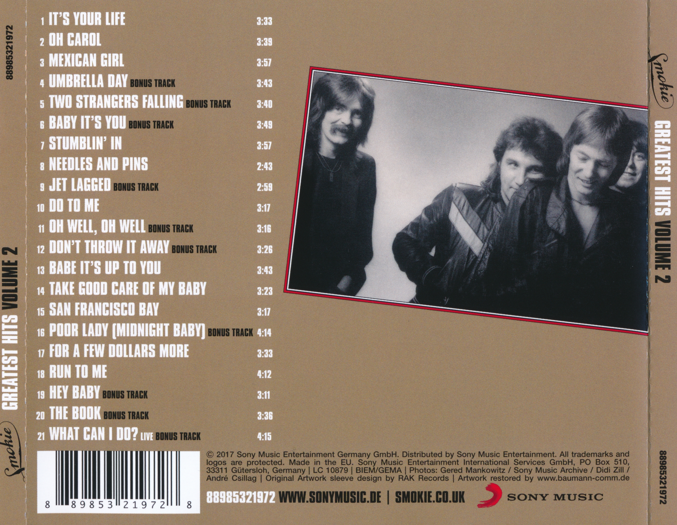 Выпустив на пике карьеры свой классический "Greatest Hits", легендарный британский коллектив не перестал выпускать хиты. После выхода таких синглов как "Mexican Girl", "For A Few Dollars More", "Take Good Care Of My Baby", "Run To Me" и "Needles And Pins" Smokie получили ещё большее признание и стали постоянными гостями в чартах и ТВ-шоу.