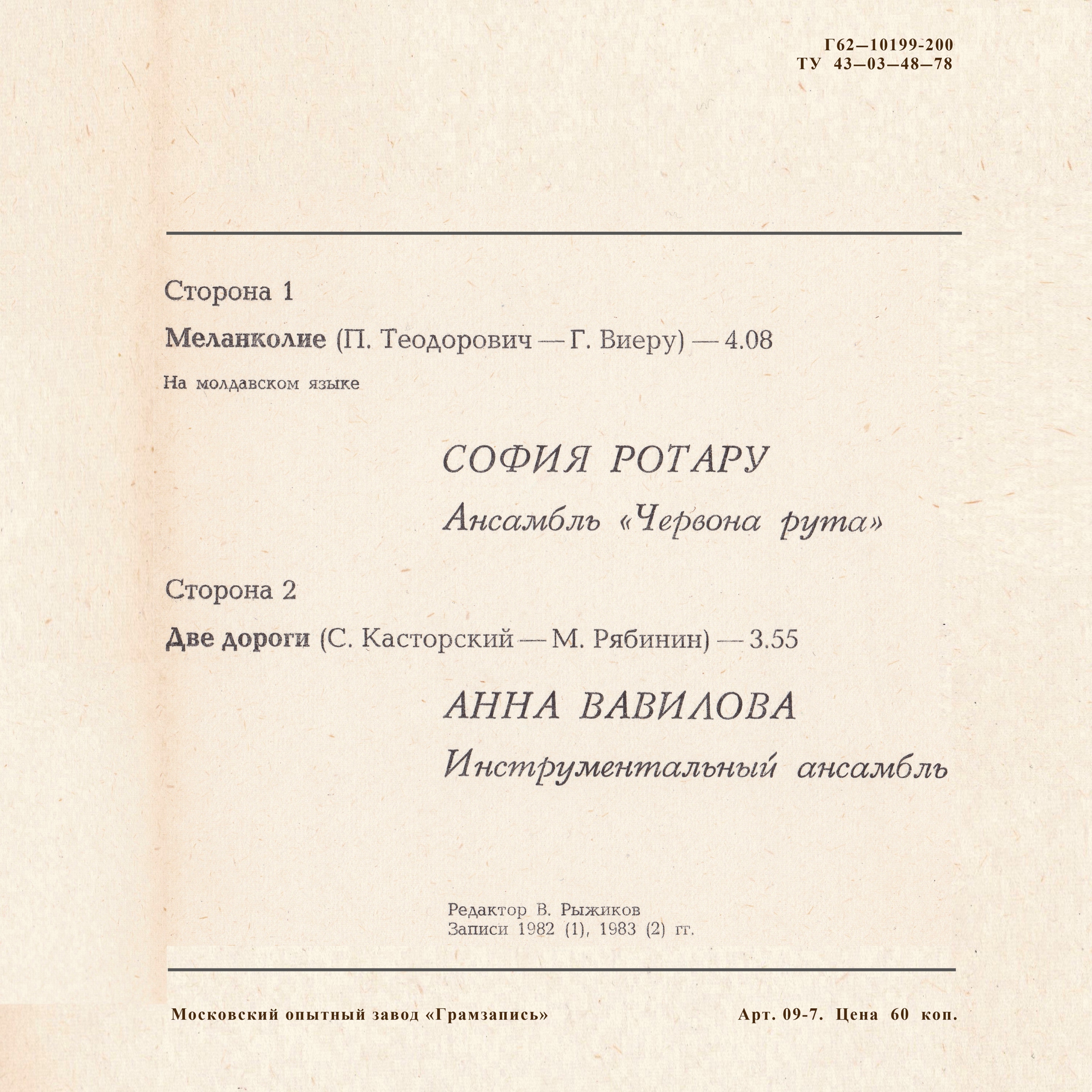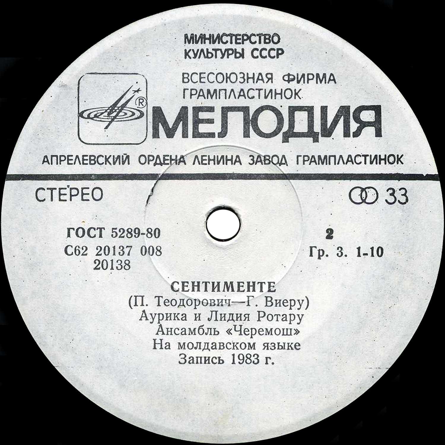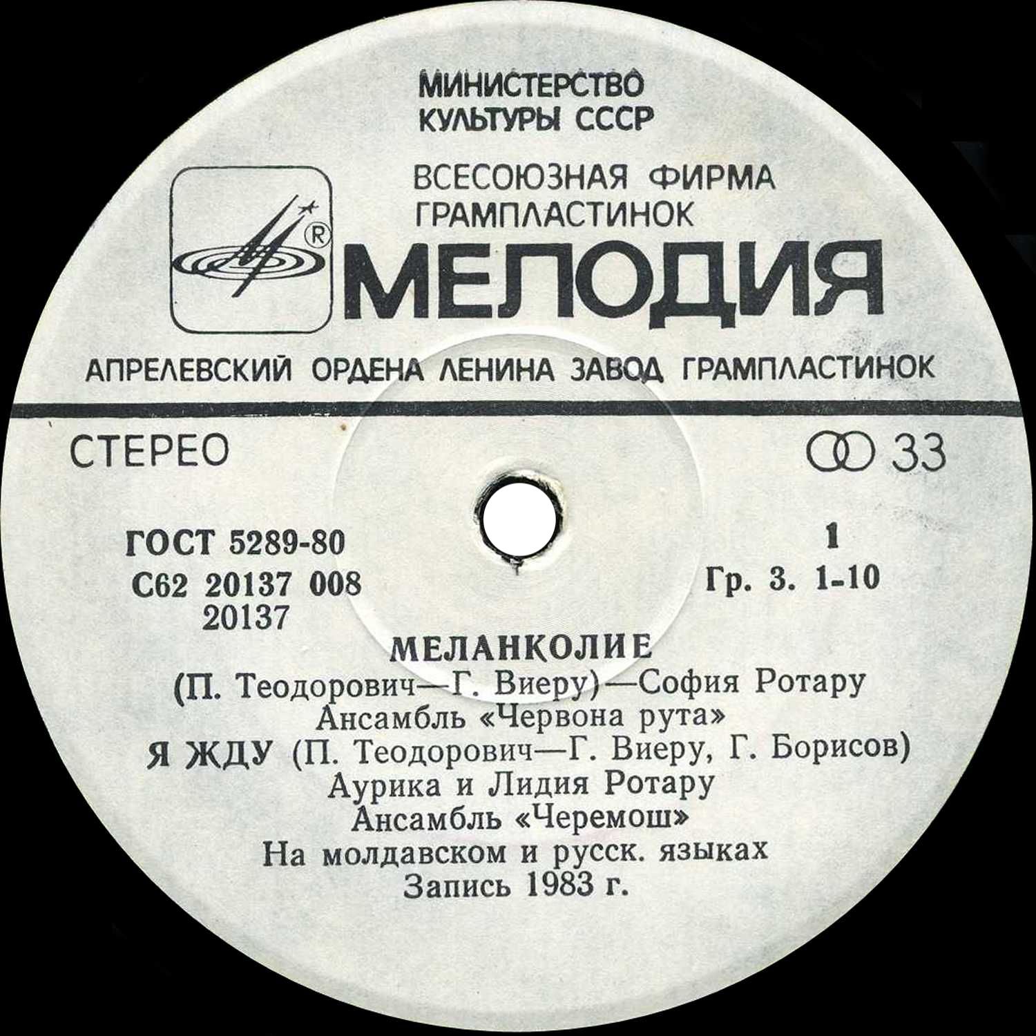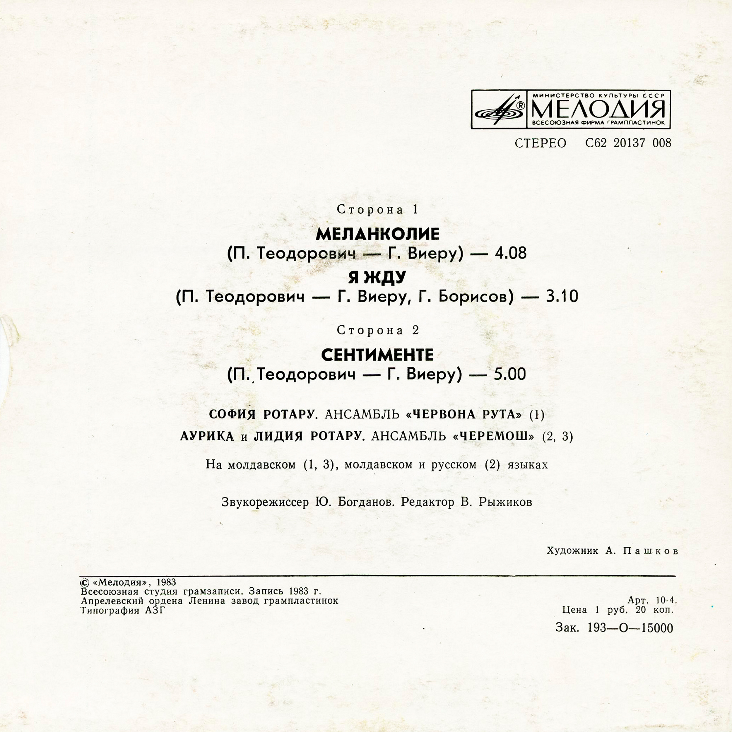 Лейбл: Мелодия АЗГП С62 20137 008
