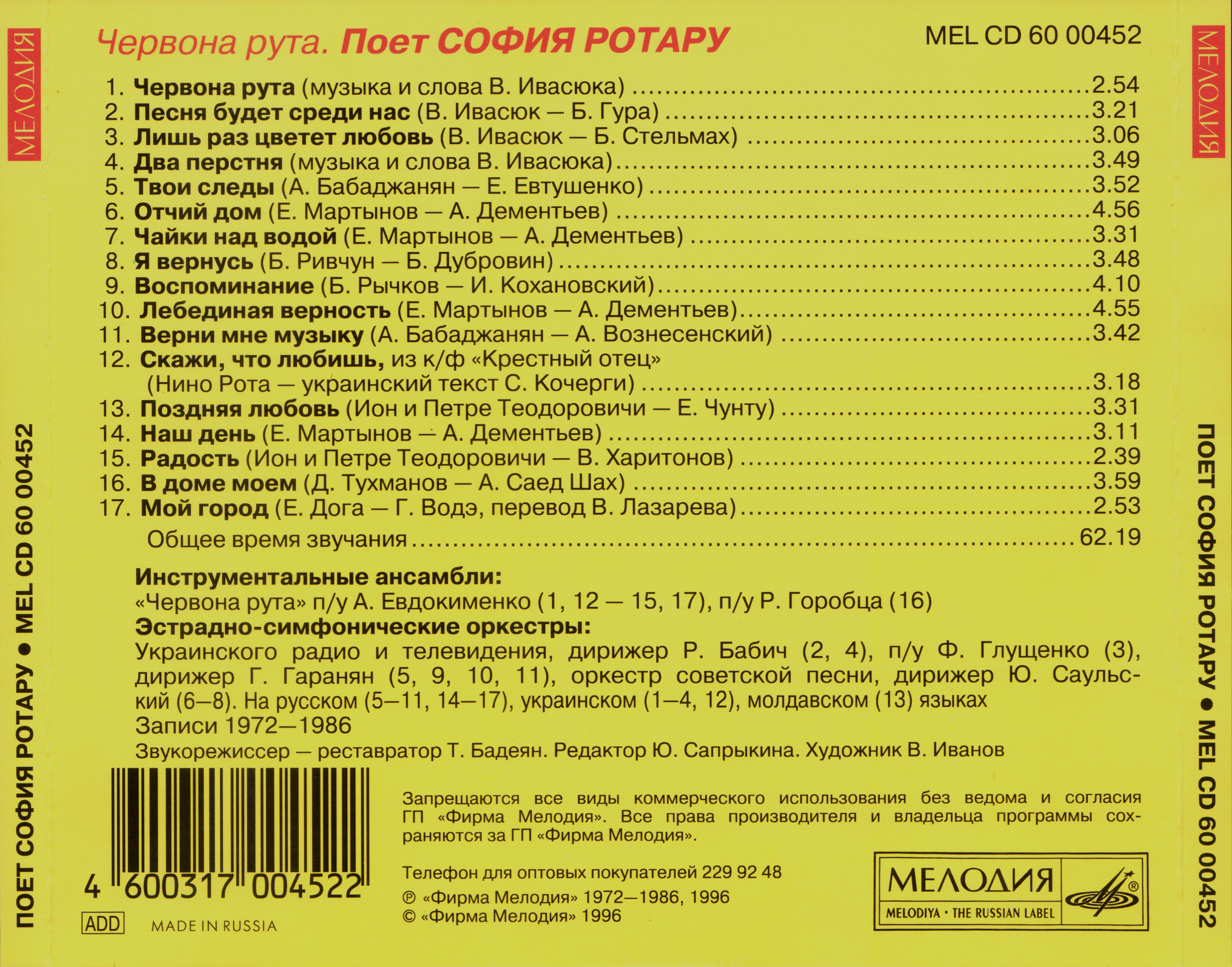 15 София Ротару - Радость (И. и П. Теодоровичи - В. Харитонов) (2:41)