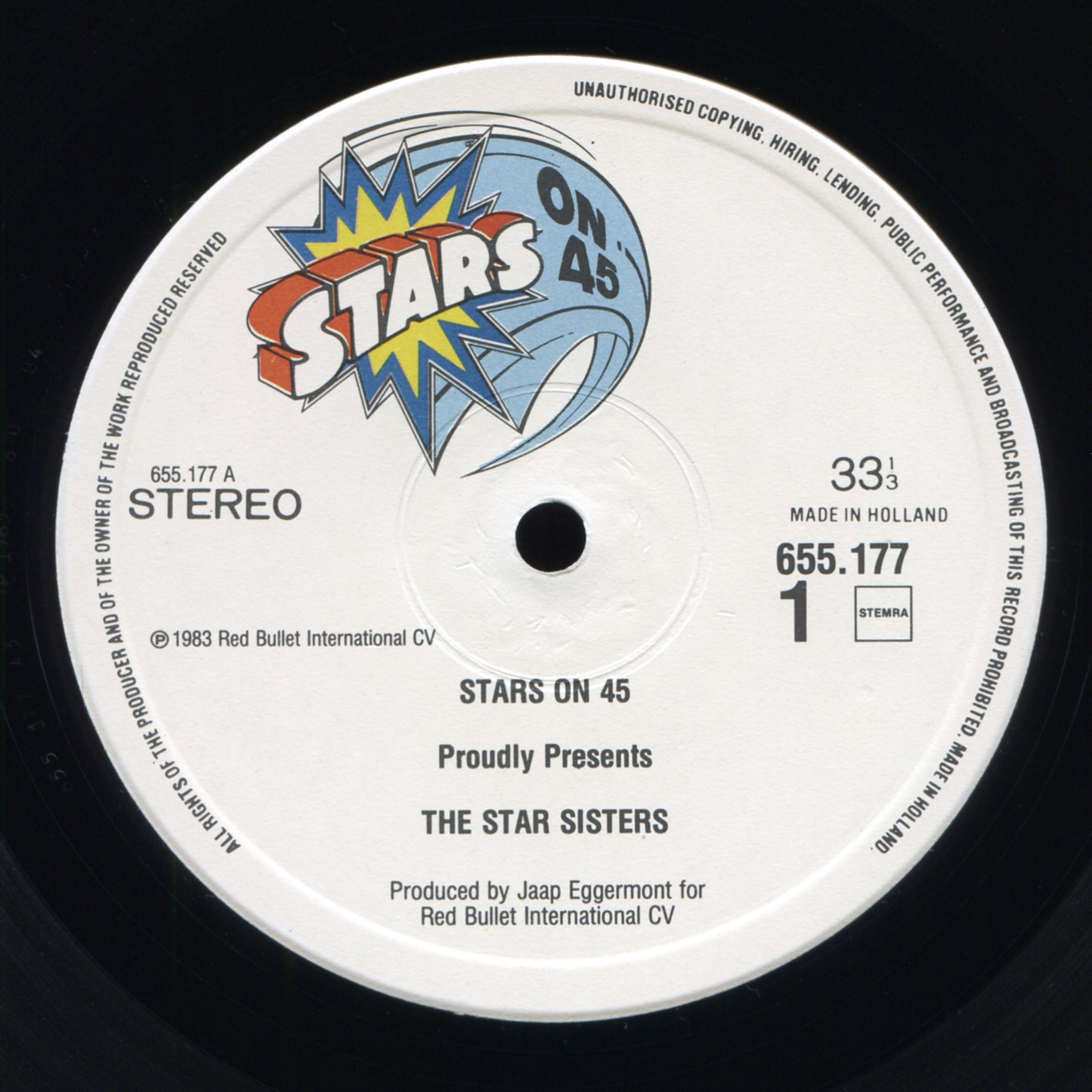 Comes with a printed green innersleeve with "Stars On 45 ✯✯✯ The Star Sisters ✯✯✯" in a circle on both sides.