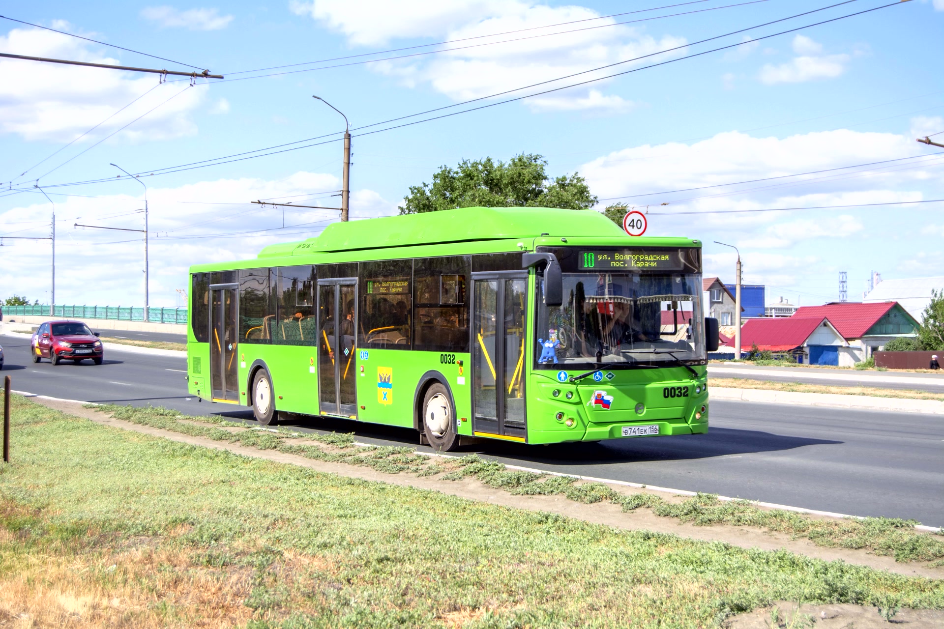 (10) Наши дни. Новый ЛиАЗ. Бортовой 0032. Ул.им.Терешковой маршрут № 10. Автобус принадлежит МКП "ОПП".Маршрут № 10. За рулём водитель Игорь Рзянин.