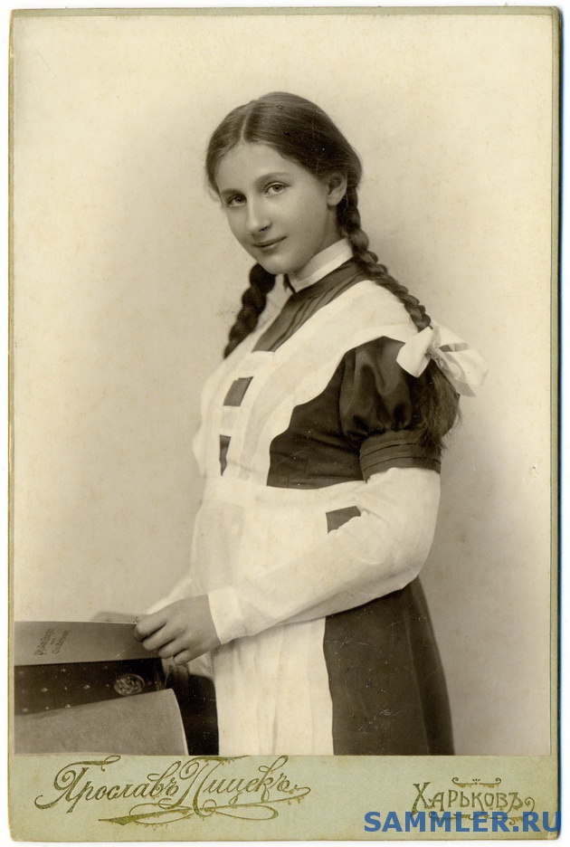 В повести Владимира Богомолова «Зося» есть фраза, в которой Витька, аккомпанируя себе на гитаре, с чувством поёт: «Разбирая поблёкшие карточки, орошу запоздалой слезой Гимназисточку в беленьком фартучке, Гимназисточку с русой косой...».