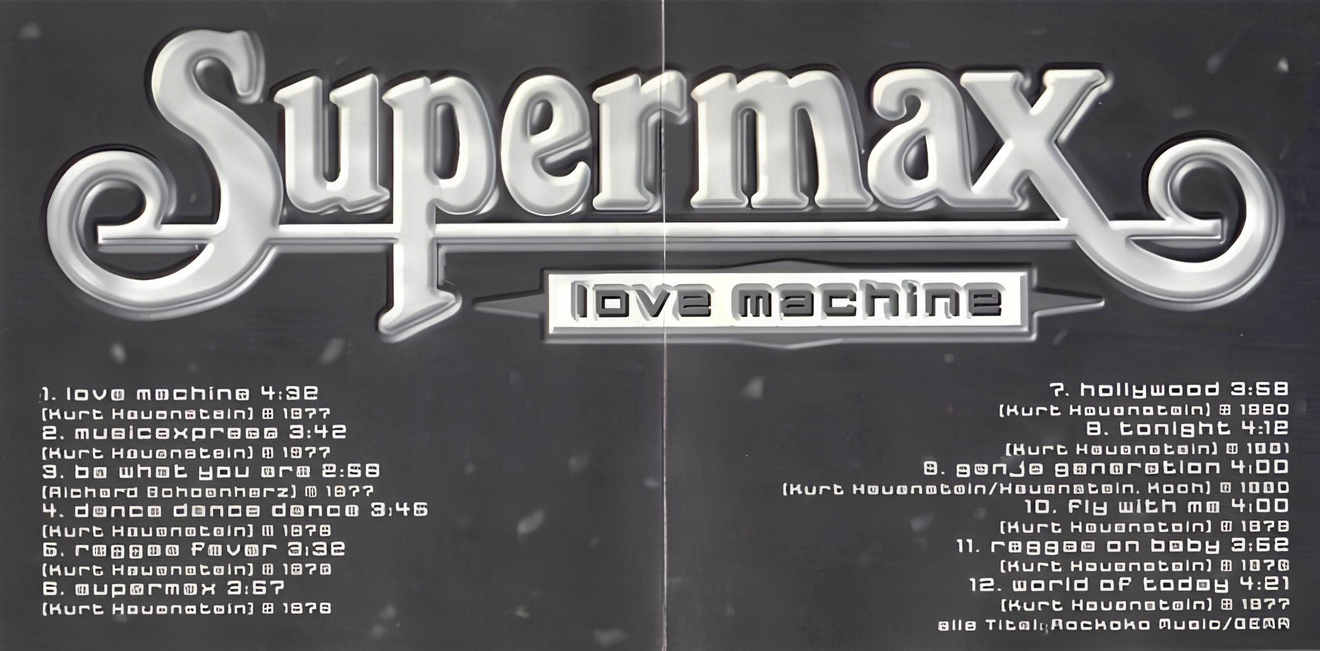 ► Основатель проекта Supermax — австрийский музыкант Курт Хауэнштайн — и впрямь опередил своё время. Если послушать его хит «Love Machine» непредвзятыми ушами, можно подумать, что это что-то современное — мрачноватая электронно-фанковая пьеса новой группы, которая косит под старину. Но нет, это 1978 год!