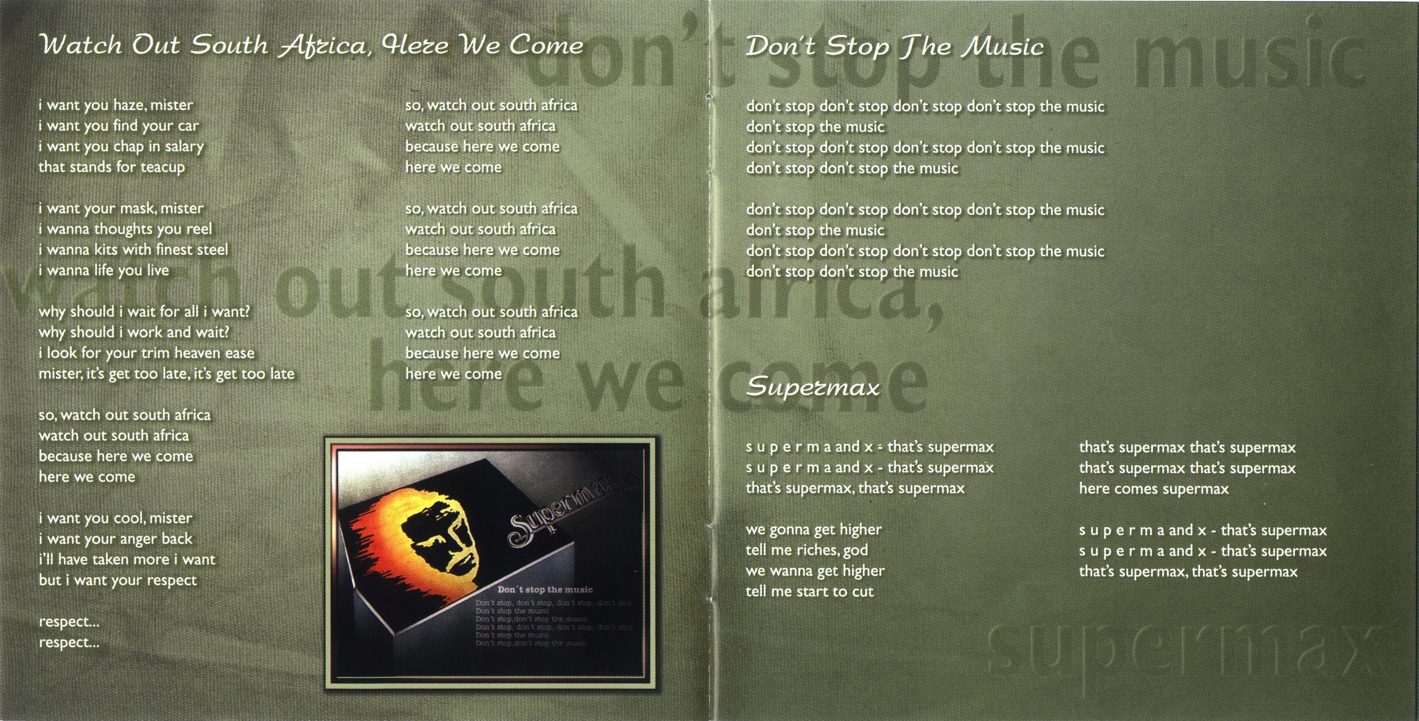 Любопытная судьба была у альбома Don't Stop the Music. Вышедший в 1976 году, он звучал настолько необычно, что оказался никому не нужен. Было продано всего полторы тысячи экземпляров. И лишь после успеха второго альбома Supermax - World of Today (1977), Don't Stop the Music был переиздан в 1977 году. Тогда-то он нашел свою благодарную публику, которая считала его вторым после World of Today альбомом. Тогда Don't Stop the Music разошелся тиражом в несколько сотен тысяч экземпляров. Этим и объясняется феномен, что на всех конвертах альбома 1976 года годом выпуска указывается 1977-ой. Те первые 1500 штук давно сгорели в дискотечном пылу...