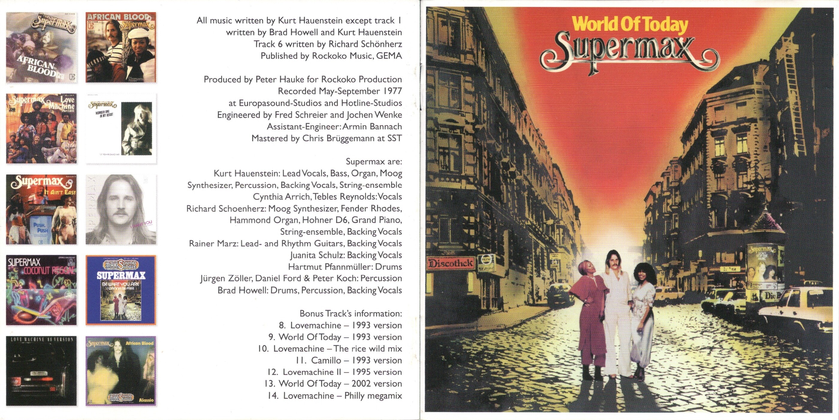 Сегодня мы вспомним о легендарном диско-рок-проекте Supermax и его втором альбоме “World of Today”, который был выпущен в далёком 1977 году. Пластинка считается одной из лучших в дискографии коллектива и дело тут не только в количестве проданных экземпляров. Хотя благодаря этому альбому, «Supermax» достиг всемирной известности, а в Советском Союзе группа получила культовый статус среди продвинутых меломанов. Главной особенностью альбома конечно же стал окончательно сформированный музыкальный стиль, который сейчас иногда называют просто “Supermax”. На пластинке представлен интересный микс из реггей, фанка, диско и поп-рока, и действительно, эту музыку сразу сложно классифицировать.