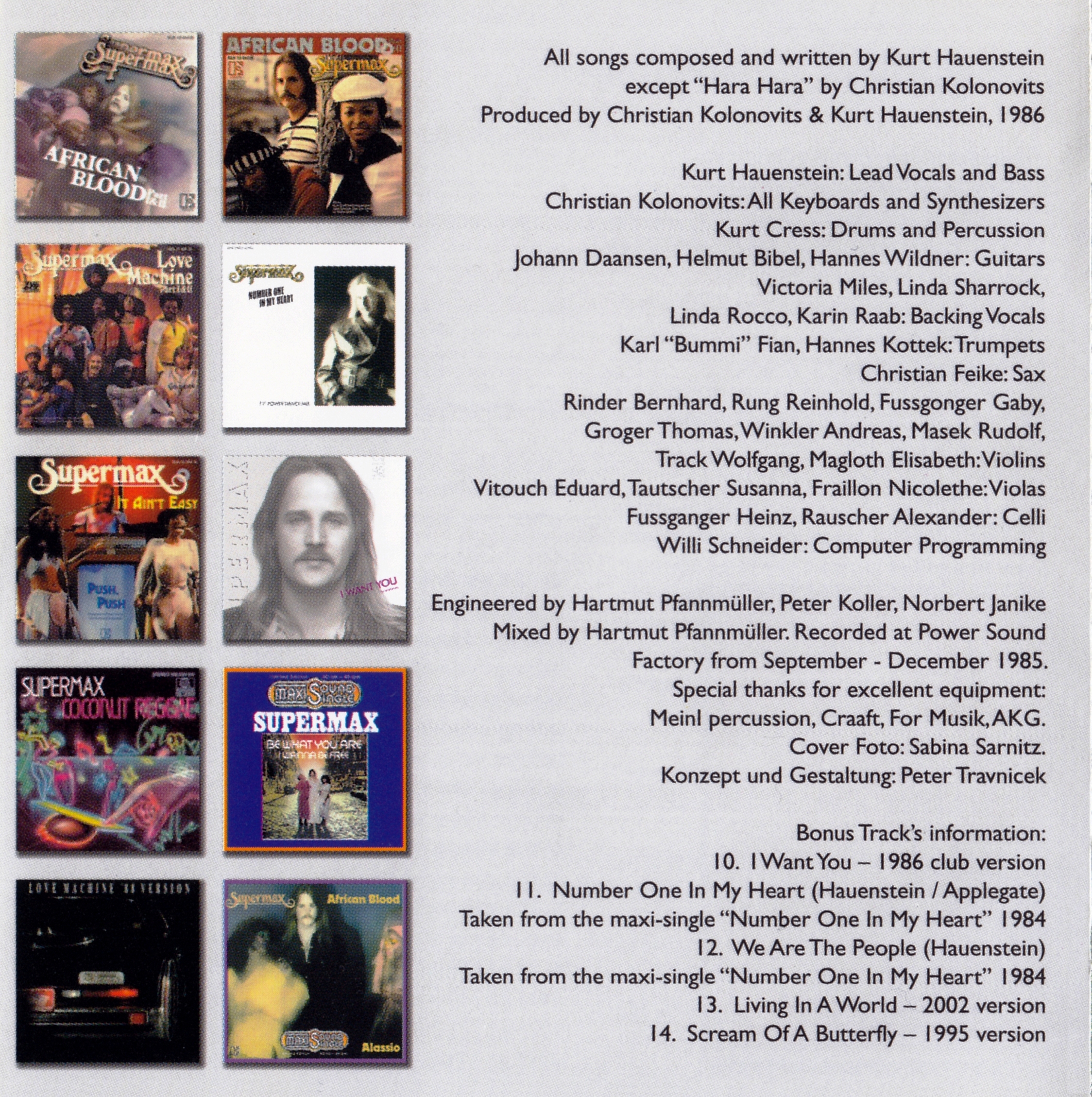 All songs composed and written by Kurt Hauenstein except "Hara Hara" by Christian Kolonovits Produced by Christian Kolonovits & Kurt Hauenstein, 1986