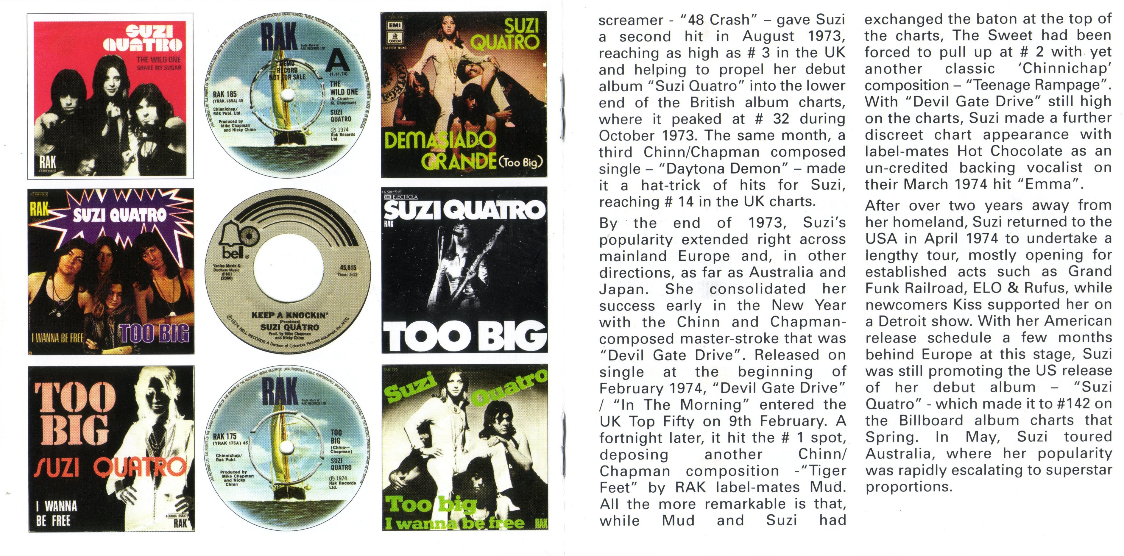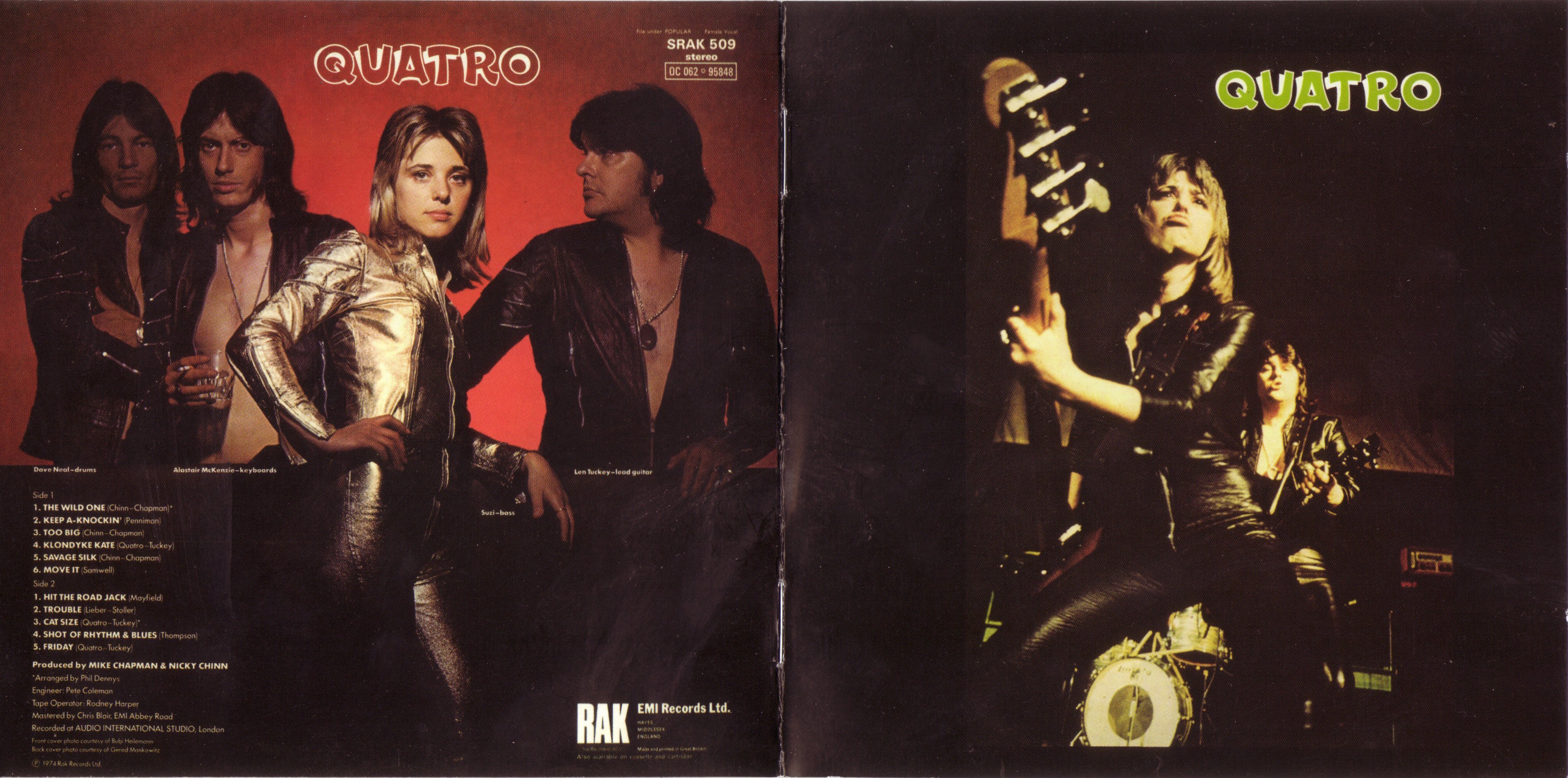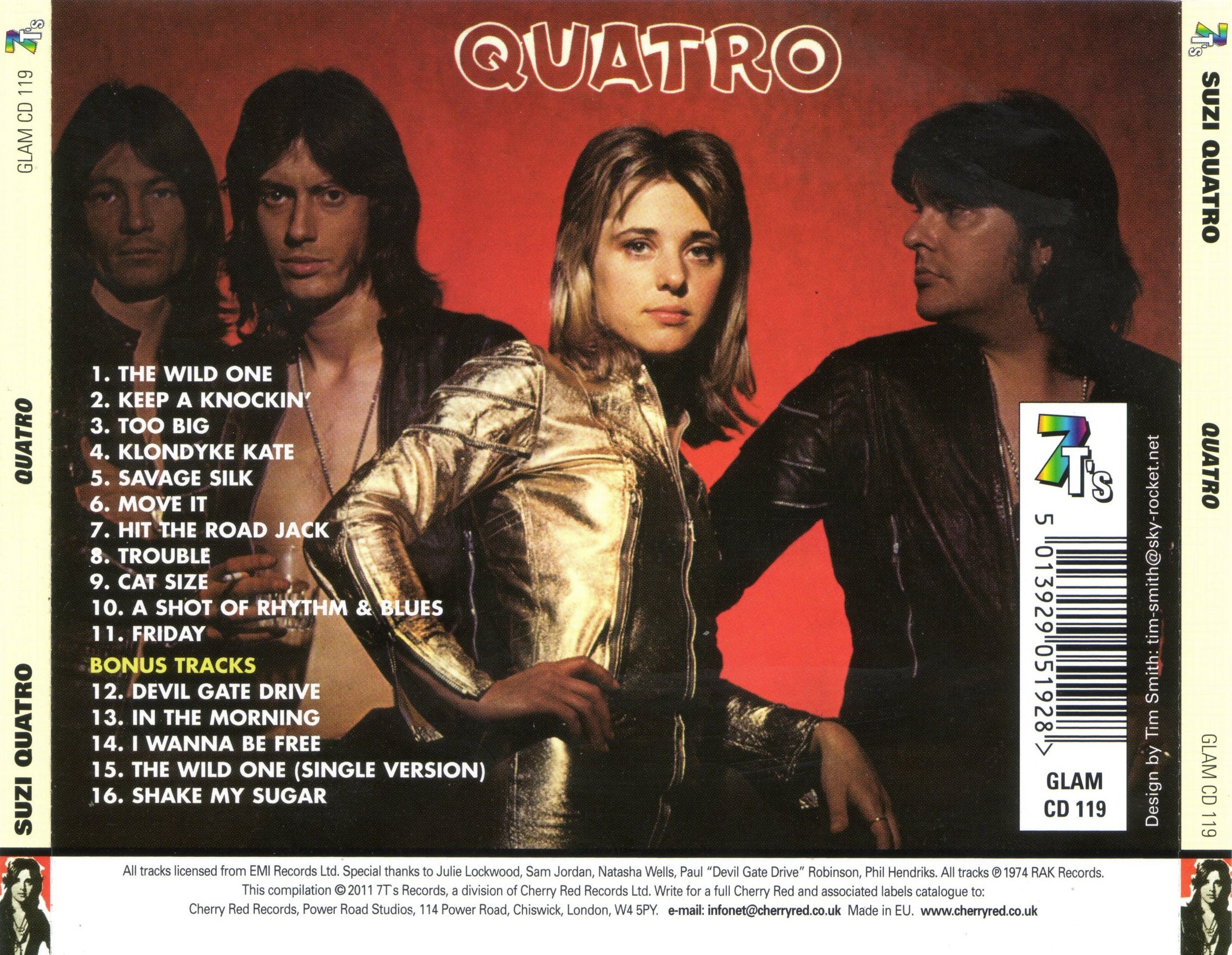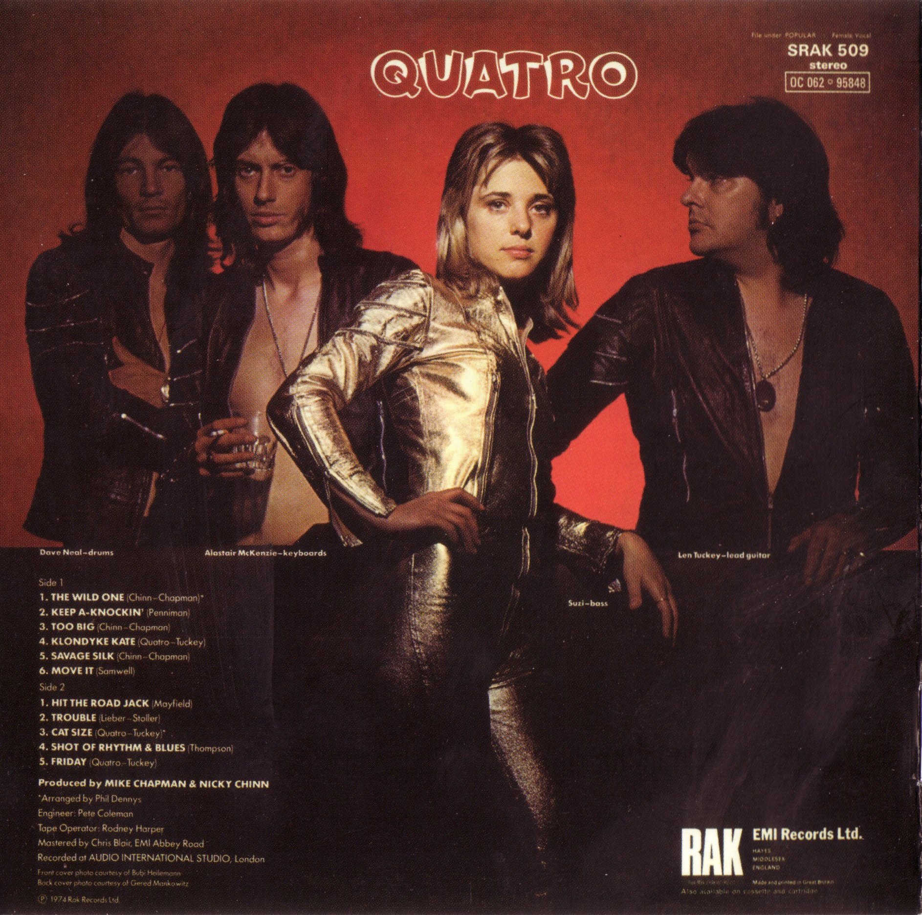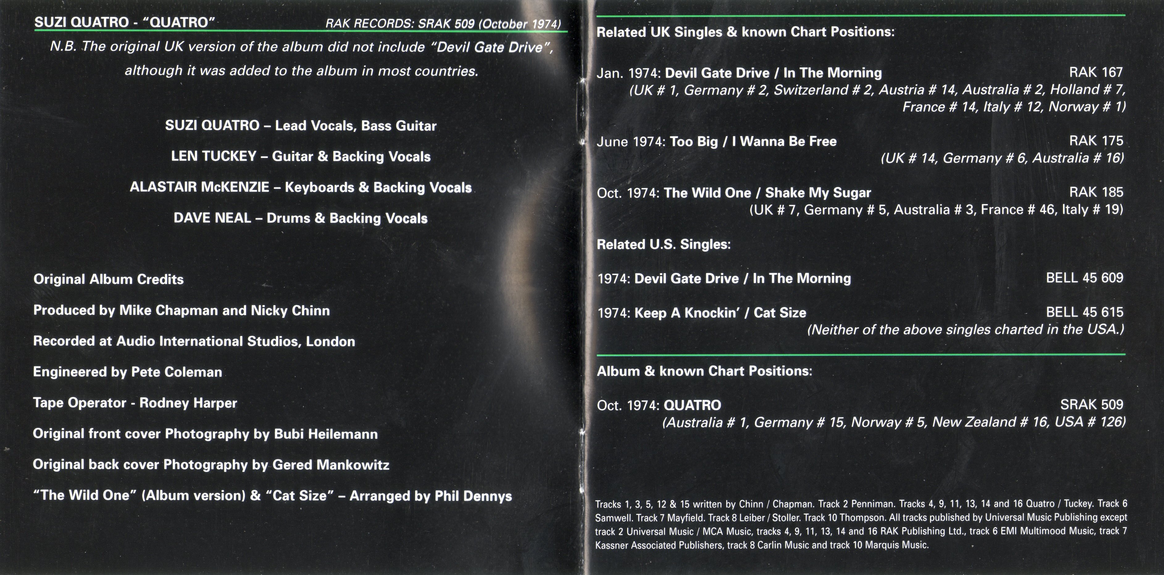 Tracks 1, 3, 5, 12 & 15 written by Chinn / Chapman. Track 2 Penniman. Tracks 4, 9, 11, 13, 14 and 16 Quatro / Tuckey. Track 6 Samwell. Track 7 Mayfield. Track 8 Leiber/Stoller. Track 10 Thompson. All tracks published by Universal Music Publishing except track 2 Universal Music / MCA Music, tracks 4, 9, 11, 13, 14 and 16 RAK Publishing Ltd., track 6 EMI Multimood Music, track 7 Kassner Associated Publishers, track 8 Carlin Music and track 10 Marquis Music.