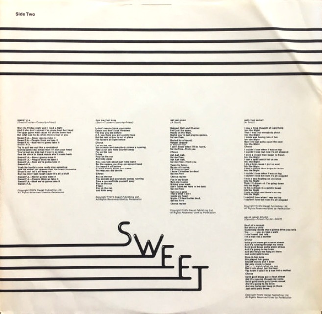 Producer – Mike Chapman-Nicky Chinn (A2, A5, B5), Phil Wainman (A1, A2, A3, A4, B1, B3, B4), Sweet (B2)