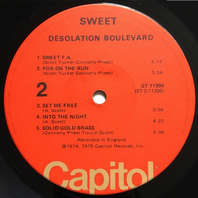 ► ► Альбом Desolation Boulevard выпущенный в США для американской аудиторией. Поскольку предыдущий альбом Sweet Fanny Adams (1974) в США не выпускался, RCA включила из него пять песен в американскую версию Desolation Boulevard. Лейбл: Capitol Records.