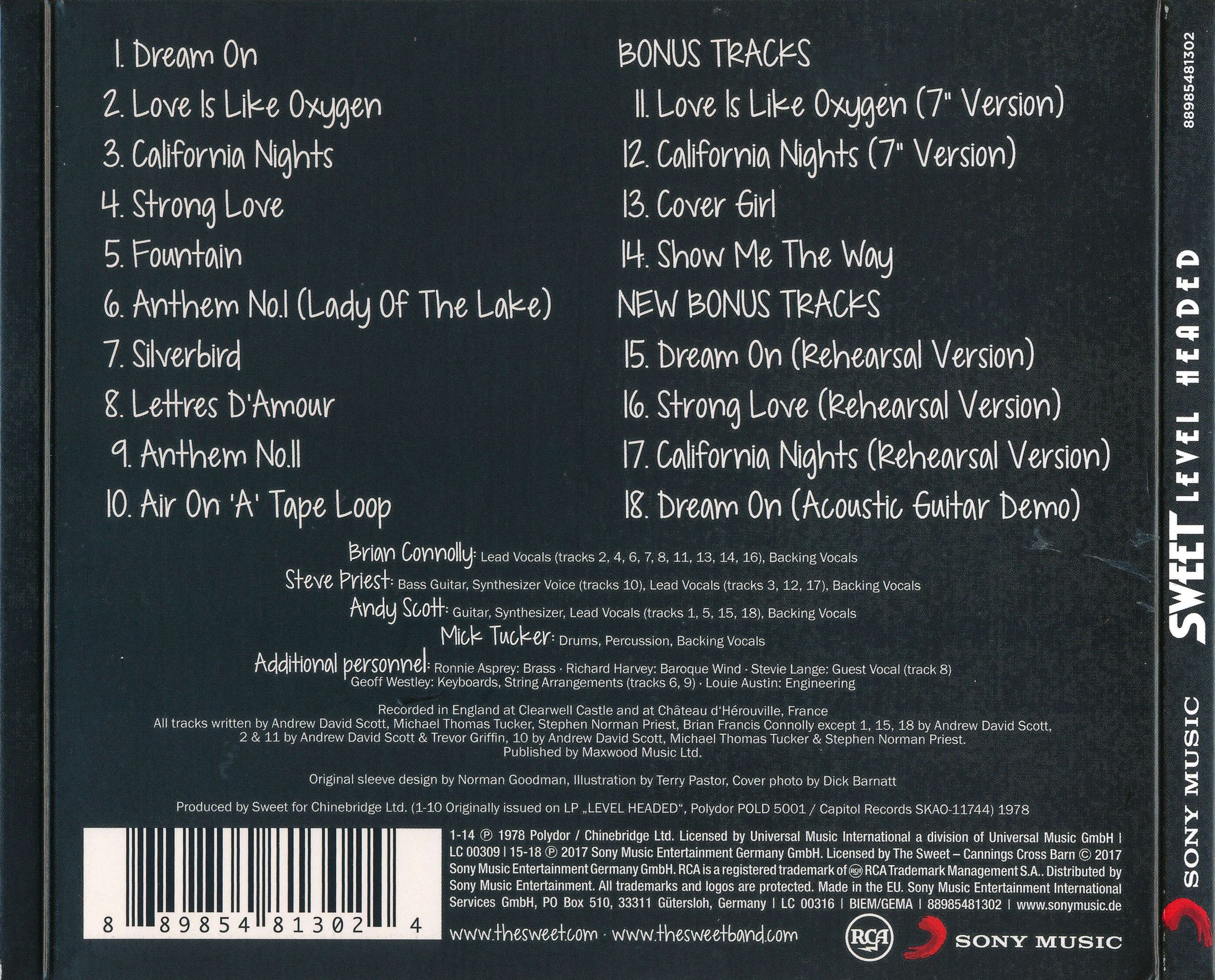 Produced by Sweet for Chinebridge Ltd. (1-10 Originally issued on LP LEVEL HEADED“, Polydor POLD 5001 / Capitol Records SKAO-11744) 1978