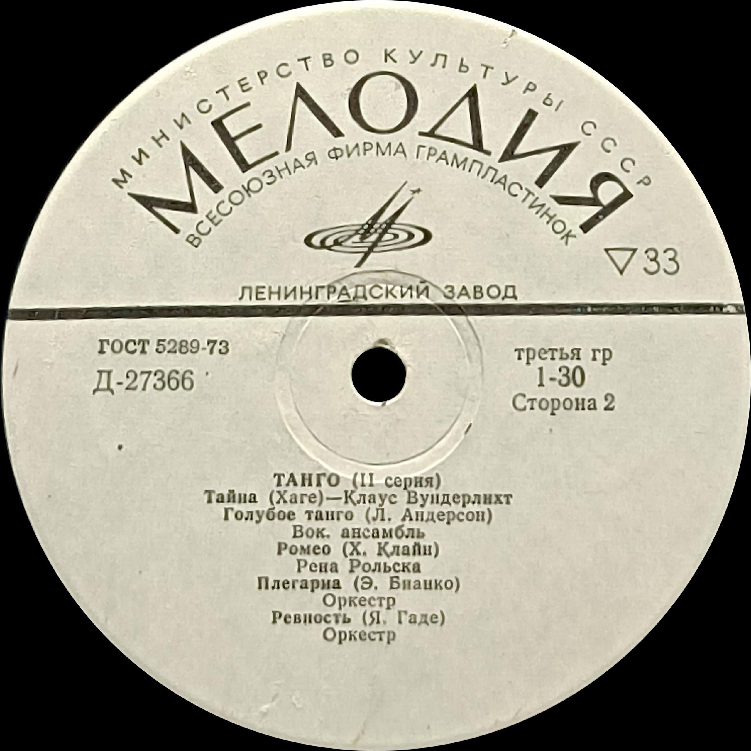 Десятидюймовый (гранд) сборник «Танго (II серия)» вобрал в себя популярные танго разных лет и разных же исполнителей. Винил вышел в 1970 году, естественно, на Мелодии с названиями "от балды" или сильно вольным переводом. Приходится выискивать оригинальные названия