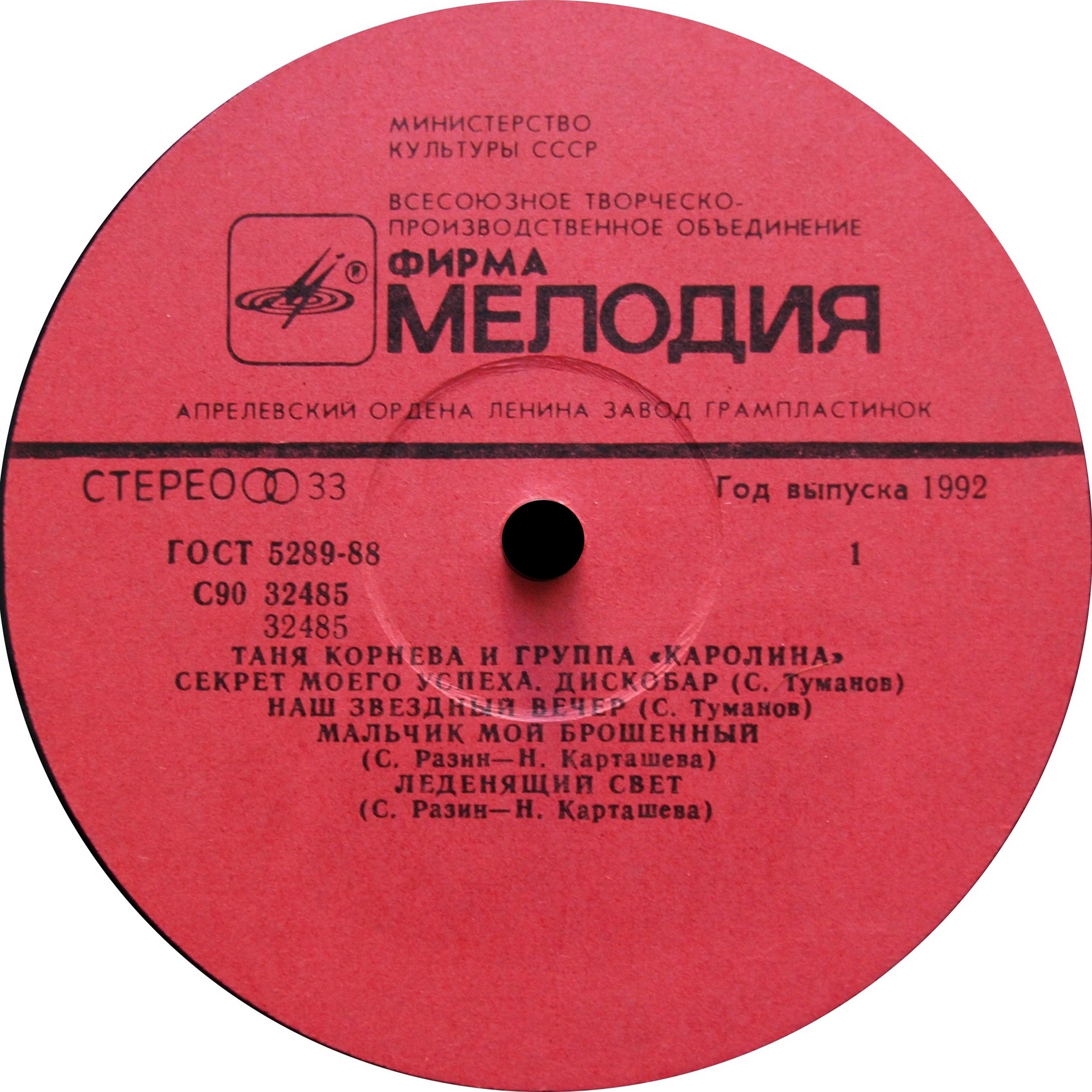 Лейбл: Мелодия АЗГП С90 32485