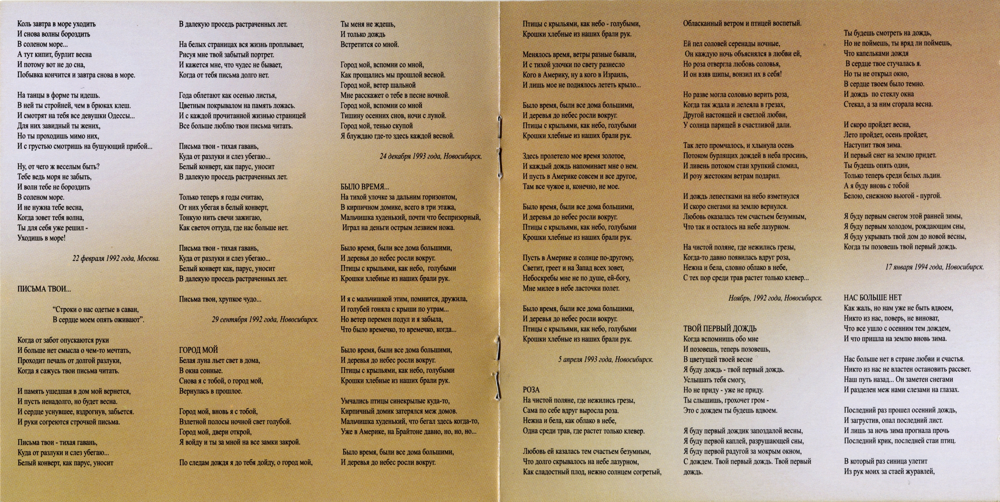 Песен полных лирики и жизненной мудрости, грустных и весёлых, песен написанных для души.
