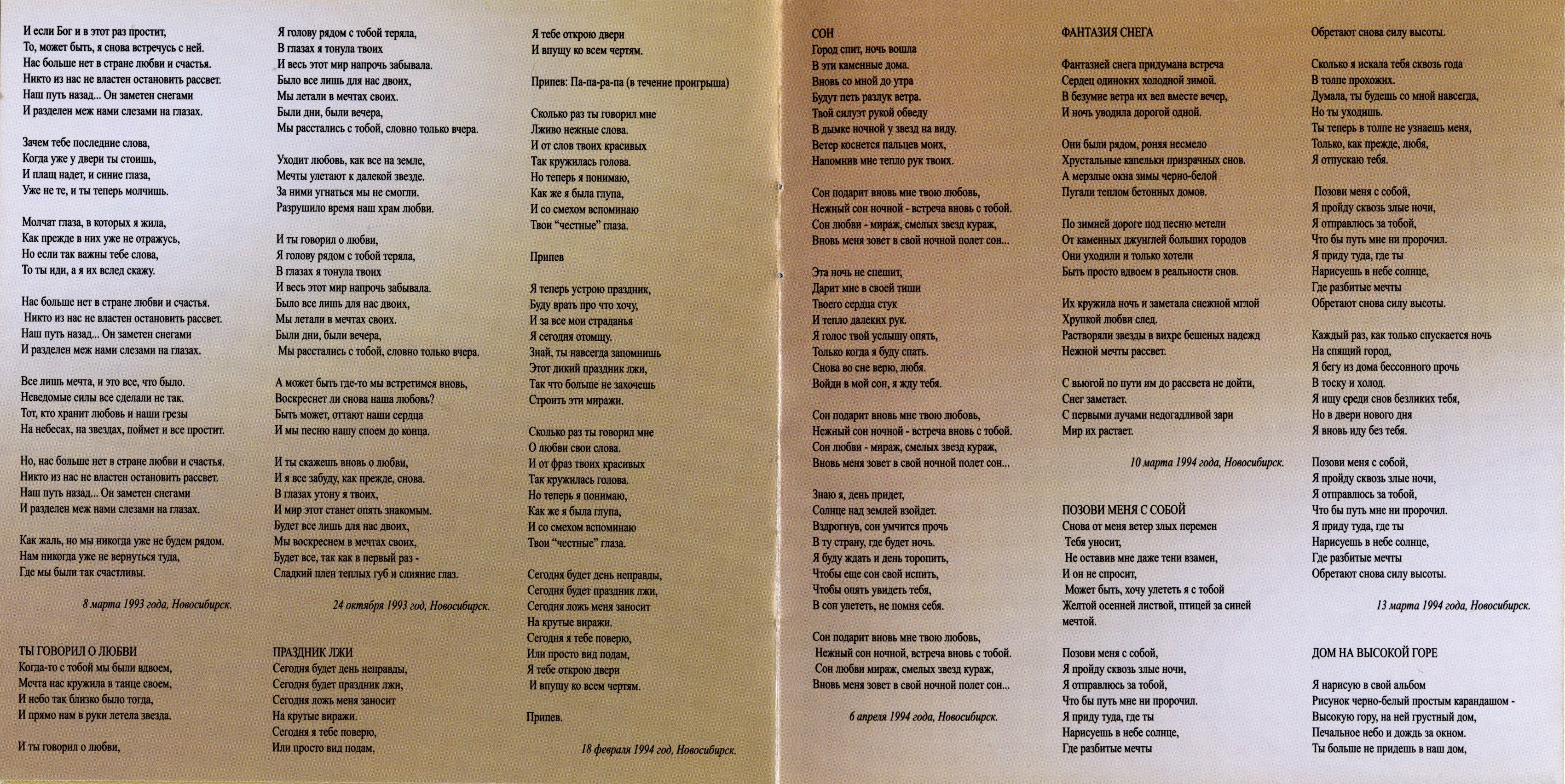 Этот авторский музыкальный альбом не успел выйти при жизни Татьяны Снежиной. Он увидел свет на 40 день после её гибели. В этот день её душа покинула Землю, но словно оставила свой свет в этом альбоме. Тираж разлетелся мгновенно и в 2003 году после ремастеринга вышел его современный вариант.