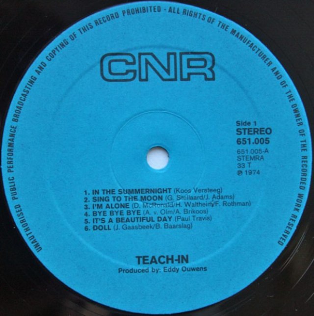 История группы "Teach-In" (Тич-Ин) очень простая. Образовалась в 1969 году и в первоначальном составе даже подписала в 1970 году контракт на запись с крупной компанией грамзаписи CBS. Однако выпущенные вскоре три сорокопятки успеха не имели, и CBS не стала выпускать полноценный альбом.