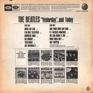 Ранние обложки альбома выпущены со словом Yesterday в кавычках. Альбом прославился своей обложкой: «битлы» были изображены одетыми в белые фартуки мясников и украшенными обезглавленными детскими куклами и кусками сырого мяса, из-за чего её прозвали «обложкой мясника» («The Butcher Cover»). Из-за обложки начался огромный скандал. Реализацию альбома Capitol Records была вынуждена запретить в первый же день продажи. Тогда фирма принесла извинения и отозвала примерно 750 000 экземпляров, чтобы заменить обложки (Trunk Cover), что обошлось ей в 250 000 долларов.