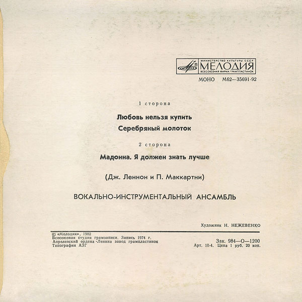 The Beatles (1974) - Вокально-инструментальный ансамбль: Эстрадная музыка