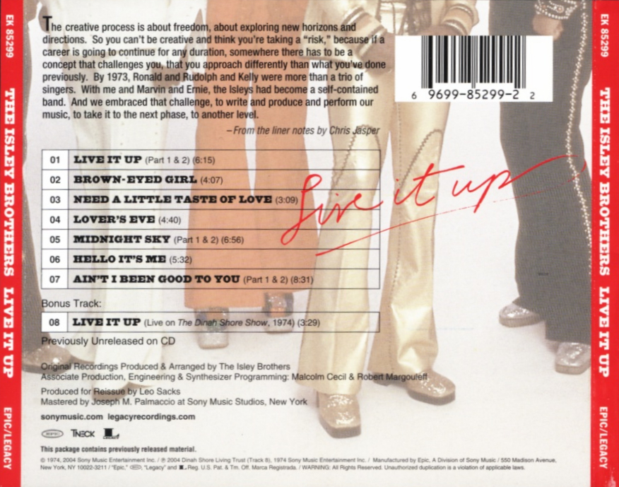 Лейбл: Epic – EK 85299, Legacy – EK 85299, T-Neck – EK 85299