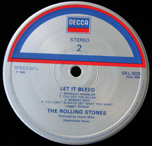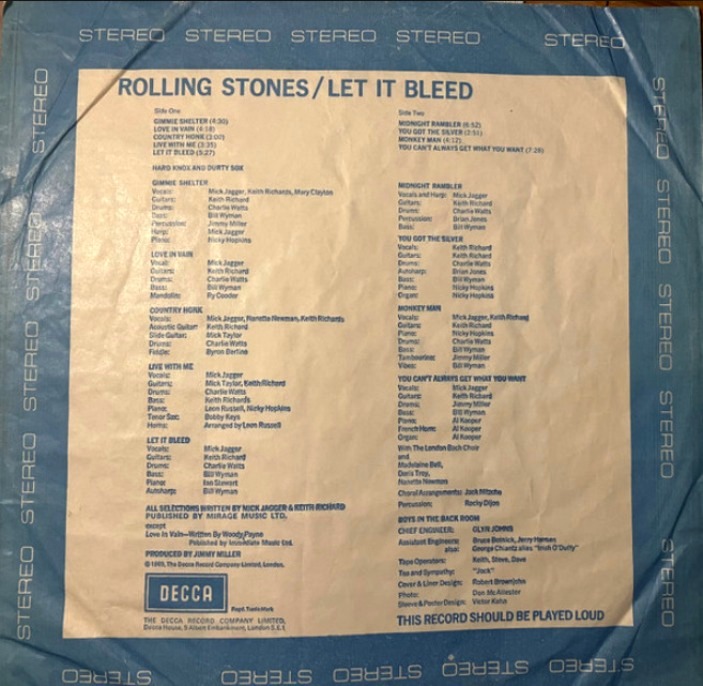 • Released on the unboxed " DECCA " label in a front laminated sleeve with a free poster and a printed inner sleeve, which lists "With the London Bach Choir" uncensored on "You can´t always get what you want".