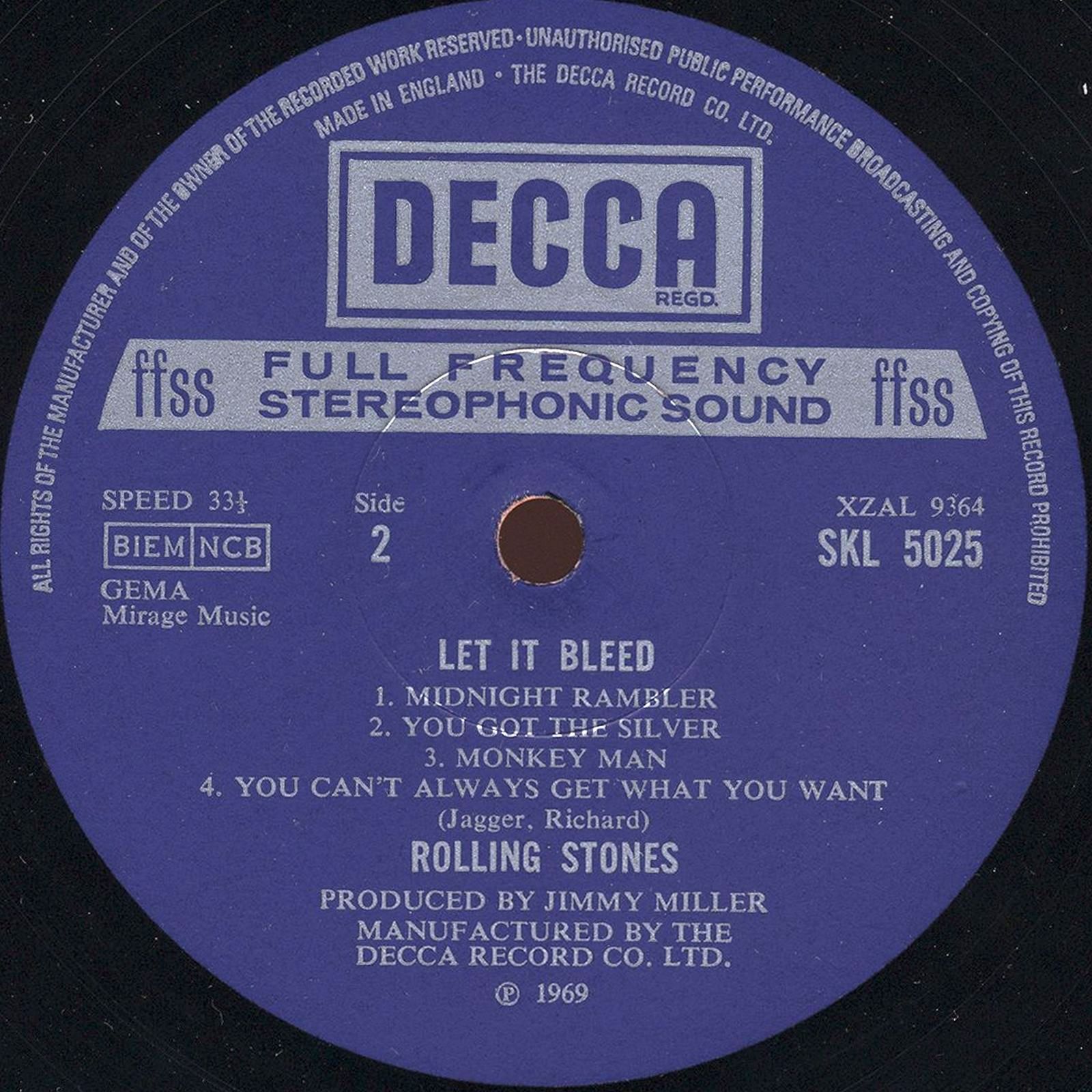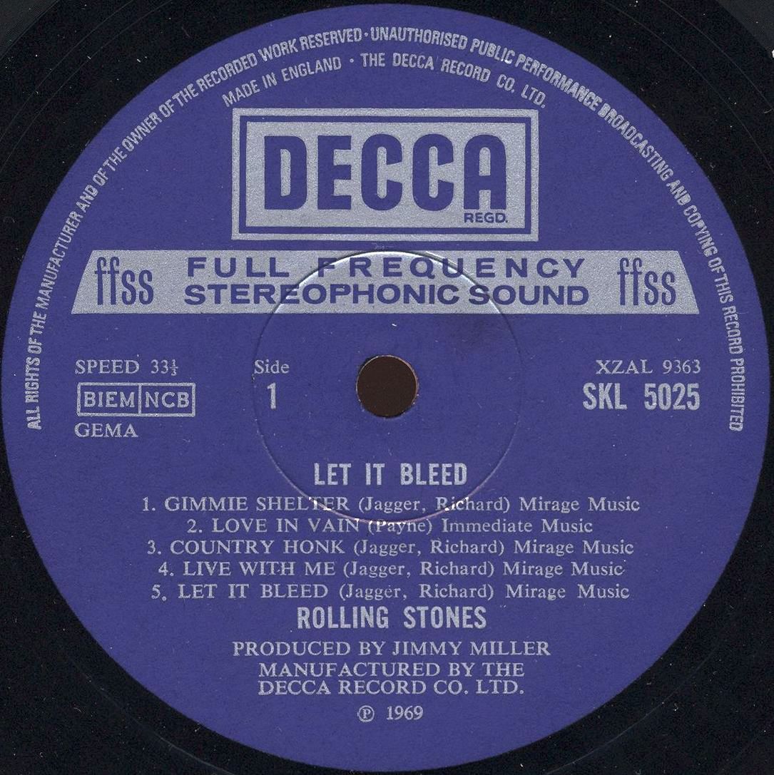 ► "Let It Bleed" is the eighth British and tenth American studio album by the English rock band The Rolling Stones, recorded at Olympic Studios between November 1968 – November 1969 and released 28 November 1969 on London Records in the United States and shortly thereafter by Decca in the United Kingdom.