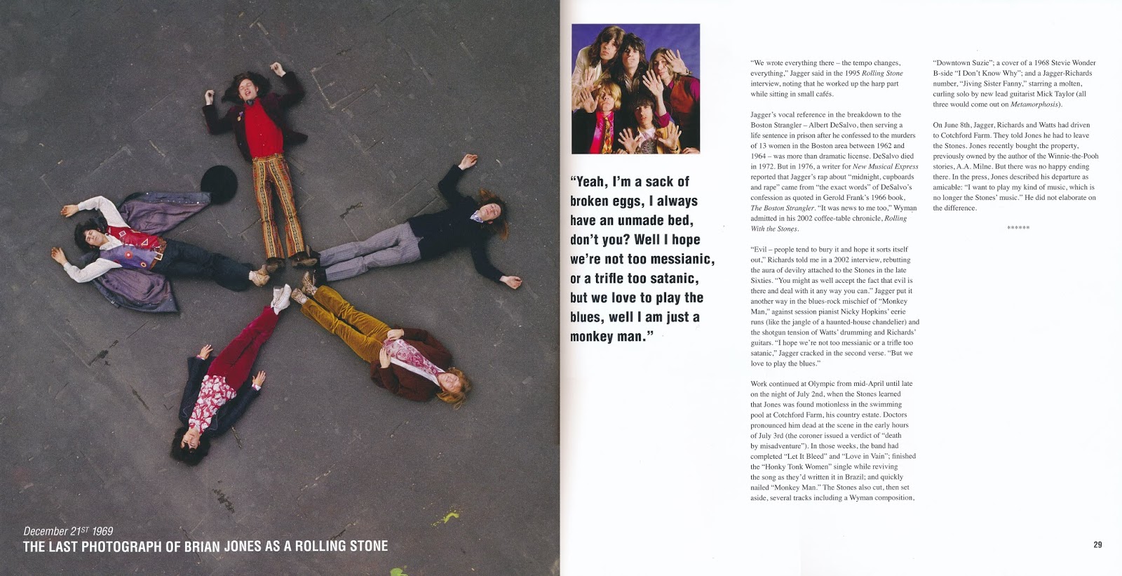 На самом деле, участие Джонса в этом альбоме весьма и весьма незначительное. Его наркозависимость создавала огромные проблемы, как внешние, так и внутренние. Когда Стоунз наметили совершить в 1969 году турне по США, впервые после трёхлетнего отсутствия в этой стране, они уже столкнулись с проблемой: американские власти, несколько раз арестовывавшие Брайана Джонса за наркотики, отказывались выдавать ему рабочую визу. Но если бы проблема была только в этом. Джонс становился всё более невменяемым. Он всё реже появлялся в студии на сессиях записи нового альбома. Даже когда он приходил, от этого было мало толку. Однажды, когда группа записывала "You Can't Always Get What You Want", Джонс спросил Джаггера: "Что мне играть?", на что Джаггер ответил ему: "Я не знаю, Брайан, что ты можешь сыграть?"