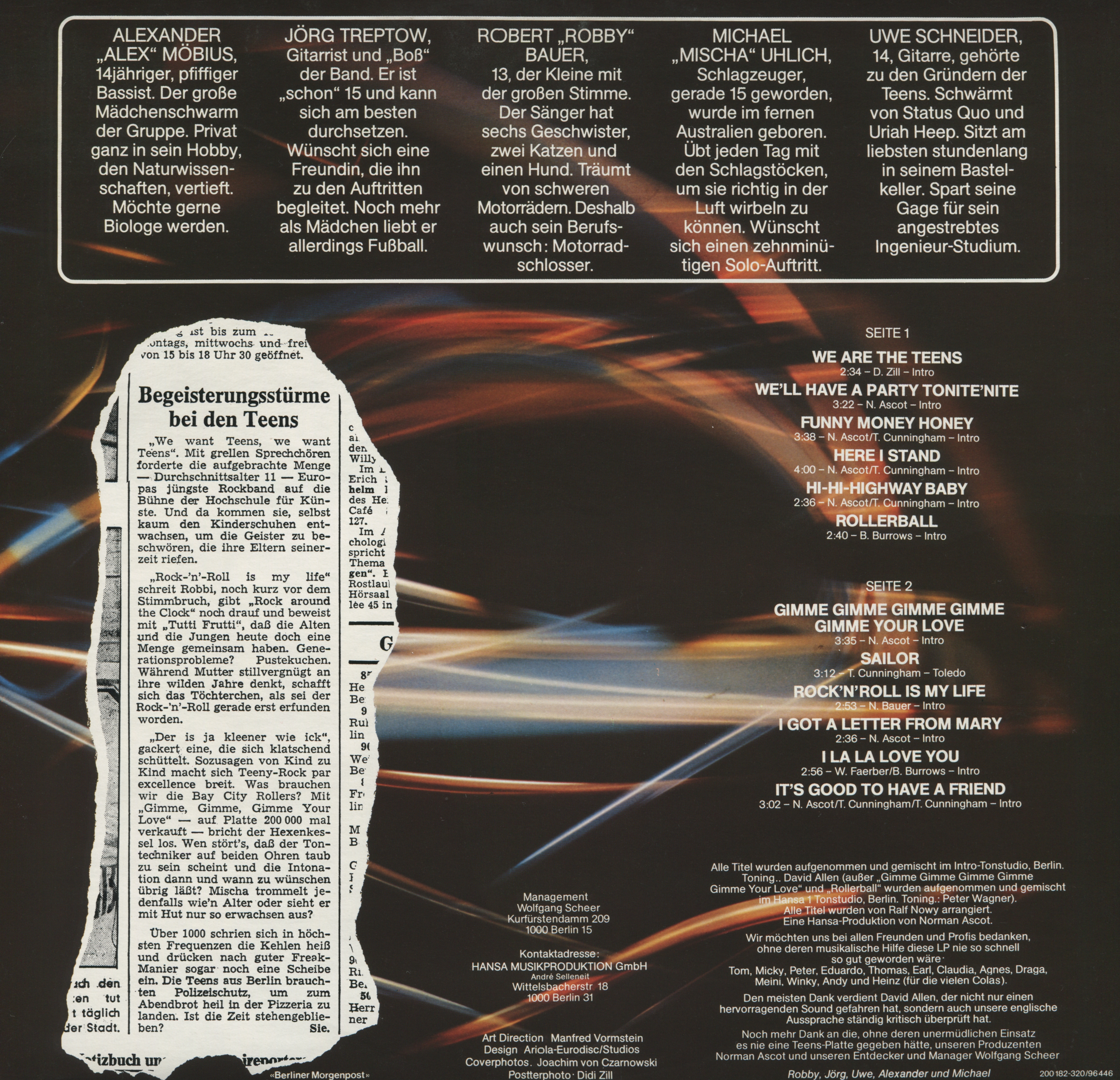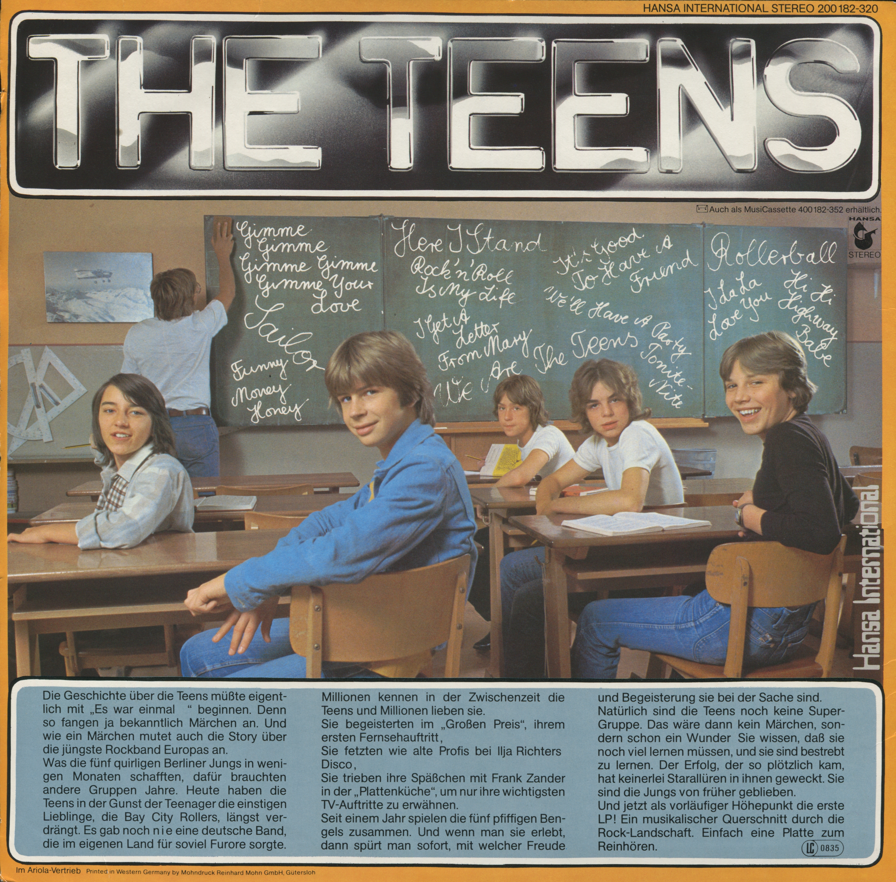 Was die fünf quirligen Berliner Jungs in wenigen Monaten schafften, dafür brauchten andere Gruppen Jahre. Heute haben die Teens in der Gunst der Teenager die einstigen Lieblinge, die Bay City Rollers, längst verdrängt. Es gab noch nie eine deutsche Band, die im eigenen Land für soviel Furore sorgte. Millionen kennen in der Zwischenzeit die Teens und Millionen lieben sie.