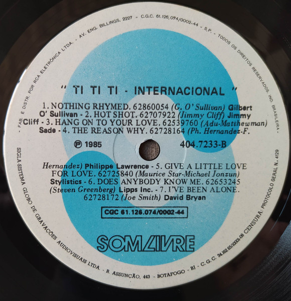 Лейбл - Som Livre – 404.7233, Rede Globo – 404.7233