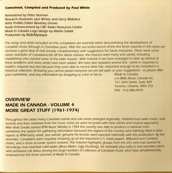 Альбом: Made In Canada: Our Rock'N'Roll History - Volume 4: More Great Stuff (1961-1974)