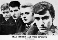 - Mal Ryder & The Spirits - group from Oxford (England). Ex-Beatniks. Members: Mal Ryder (real name Paul Bradley Couling, vocals, harmonica), Vode Chequer (real name Bob Wakley, guitar), Tony Merry (bass), Mick Charleton (drums), Larry Reddington (drums)