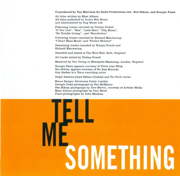 Van Morrison, Georgie Fame, Mose Allison, Ben Sidran – Tell Me Something (The Songs Of Mose Allison)