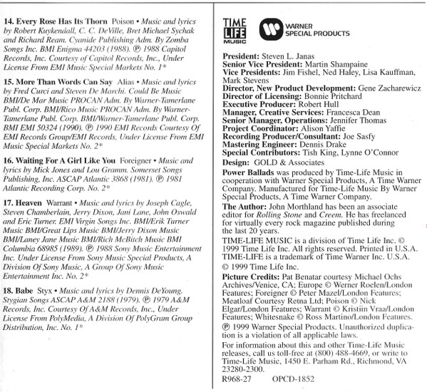Лейбл: Time Life Music – R968-27, Warner Special Products – OPCD-1852