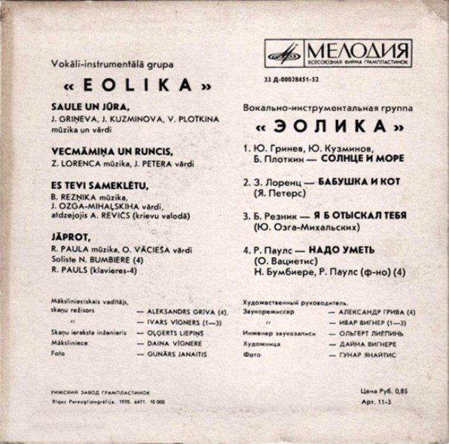 ВИА «Эолика» ~ (1970) Солнце и море (Saule Un Jūra)