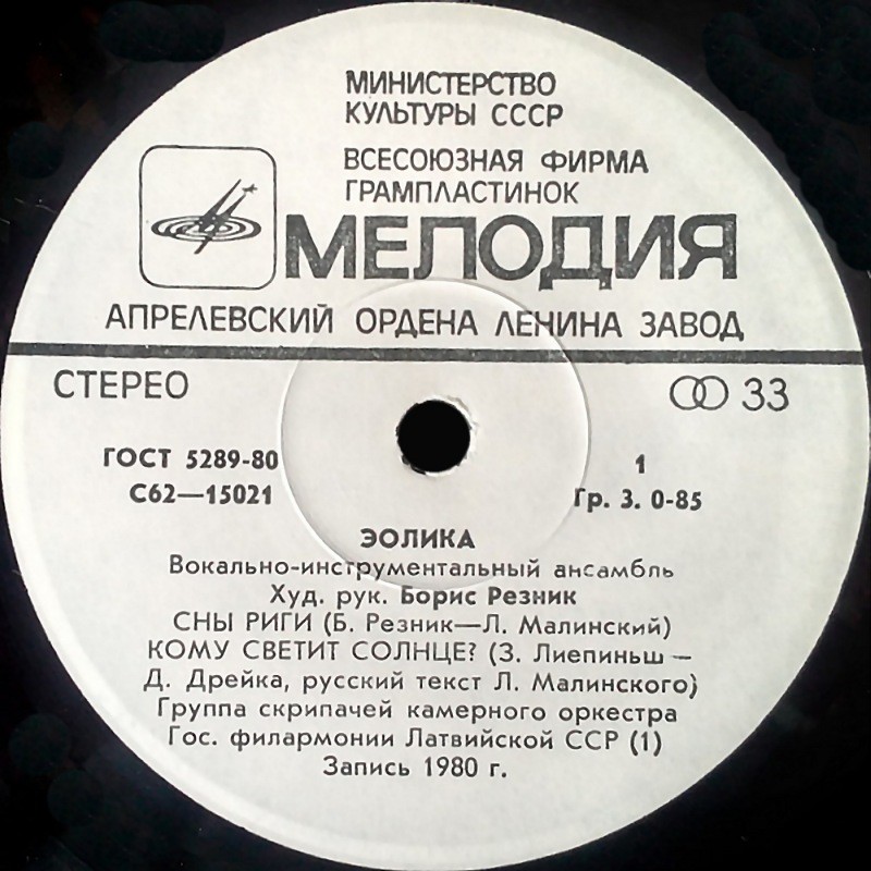 Всесоюзная студия грамзаписи. Запись 1980 г.