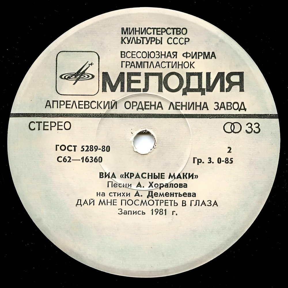Всесоюзная студия грамзаписи. Запись 1981 г.