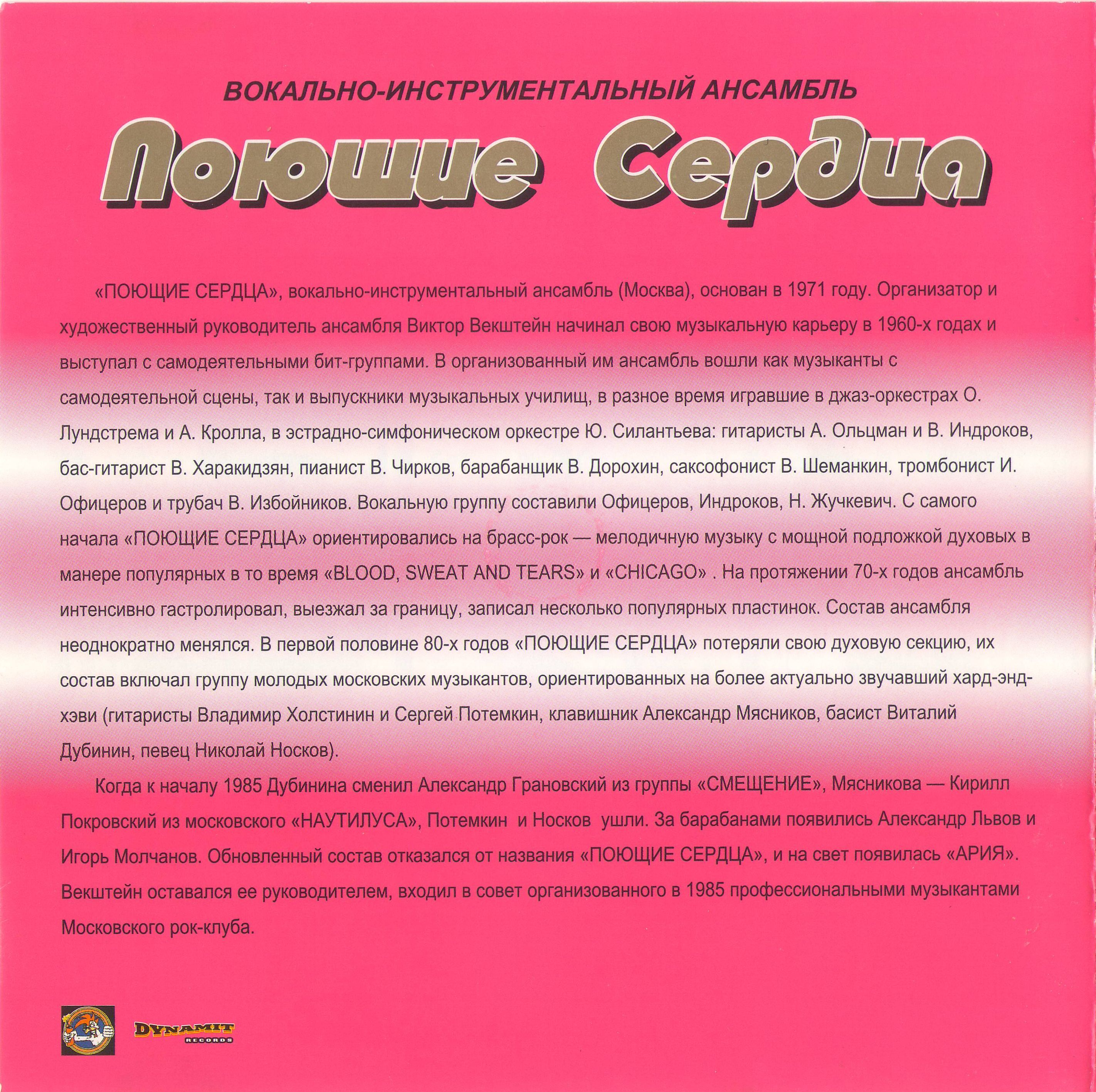 ► «ПОЮЩИЕ СЕРДЦА», вокально-инструментальный ансамбль (Москва), основан в 1971 году. Организатор и художественный руководитель ансамбля Виктор Векштейн начинал свою музыкальную карьеру в 1960-х годах и выступал с самодеятельными бит-группами.