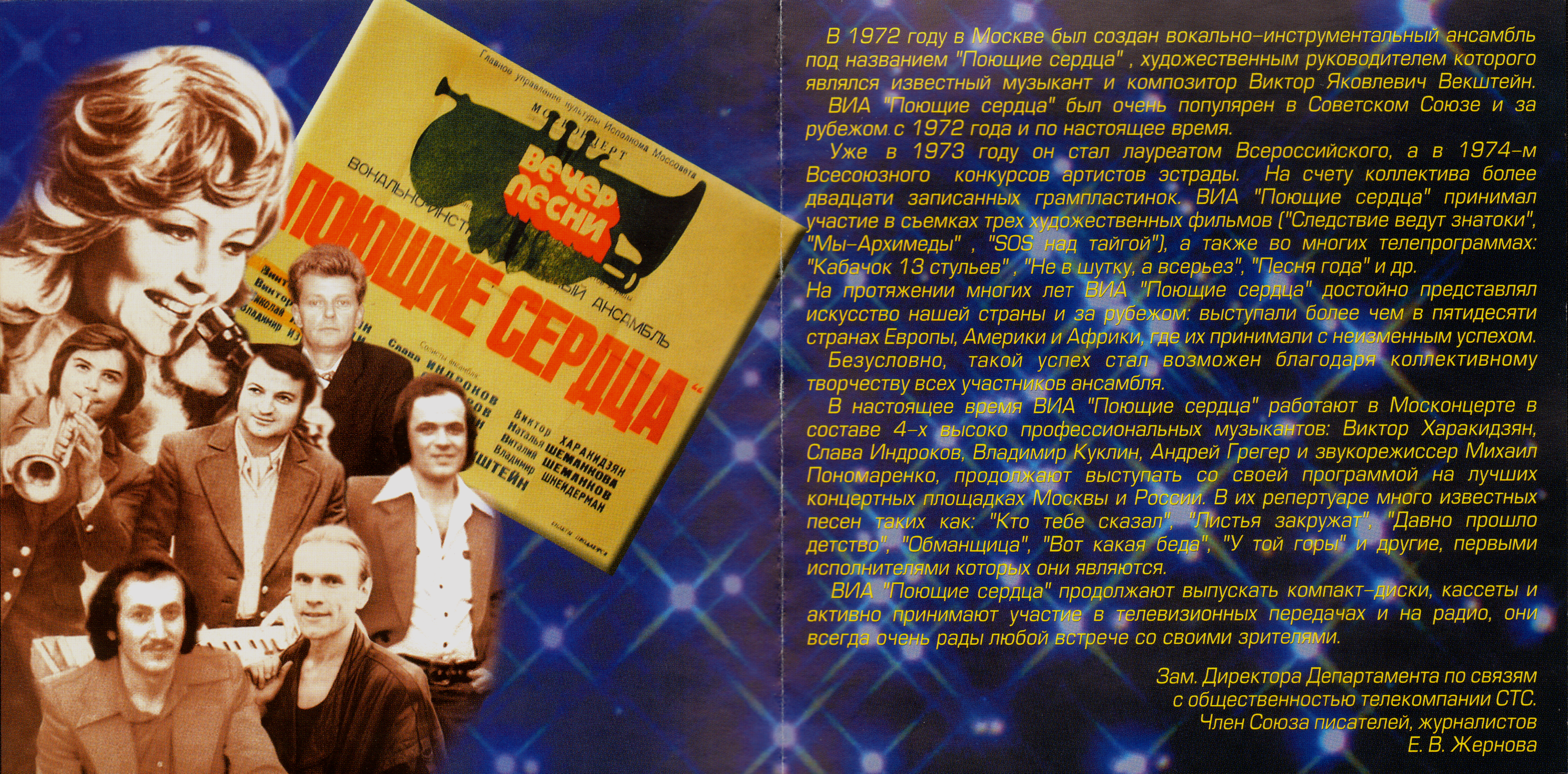 В 1972 году в Москве был создан вокально-инструментальный ансамбль "Поющие седца", художественным руководителем которого является известный музыкант и композитор Виктор Яковлевич Векштейн.