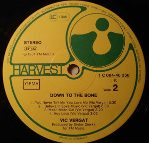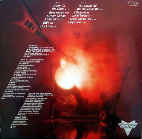 Vic Vergat - легендарный швейцарский гитарист и лидер прогрессивной группы TOAD, который в начале 70-х записал три фантастических альбома. Позже он также немного поработал с британской группой ASIA (Джефф Даунс, Карл Палмер,..). Однако его первый сольный альбом Down To The Bone зажигает сильнее, чем все, что он делал до или после.