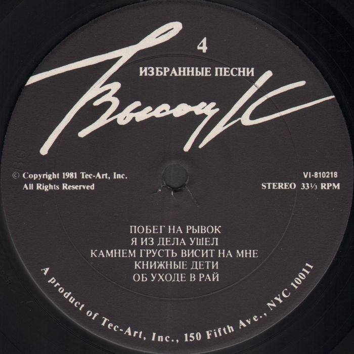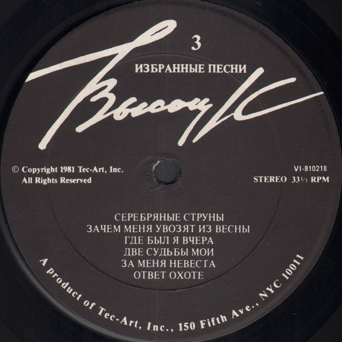 Special edition US-only LP commemorating the passing of Vysotsky.