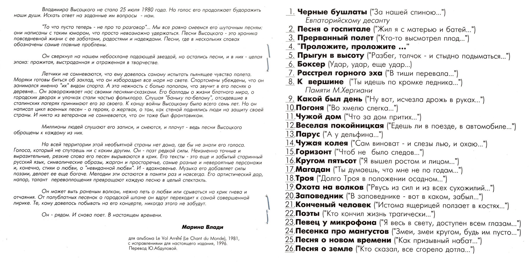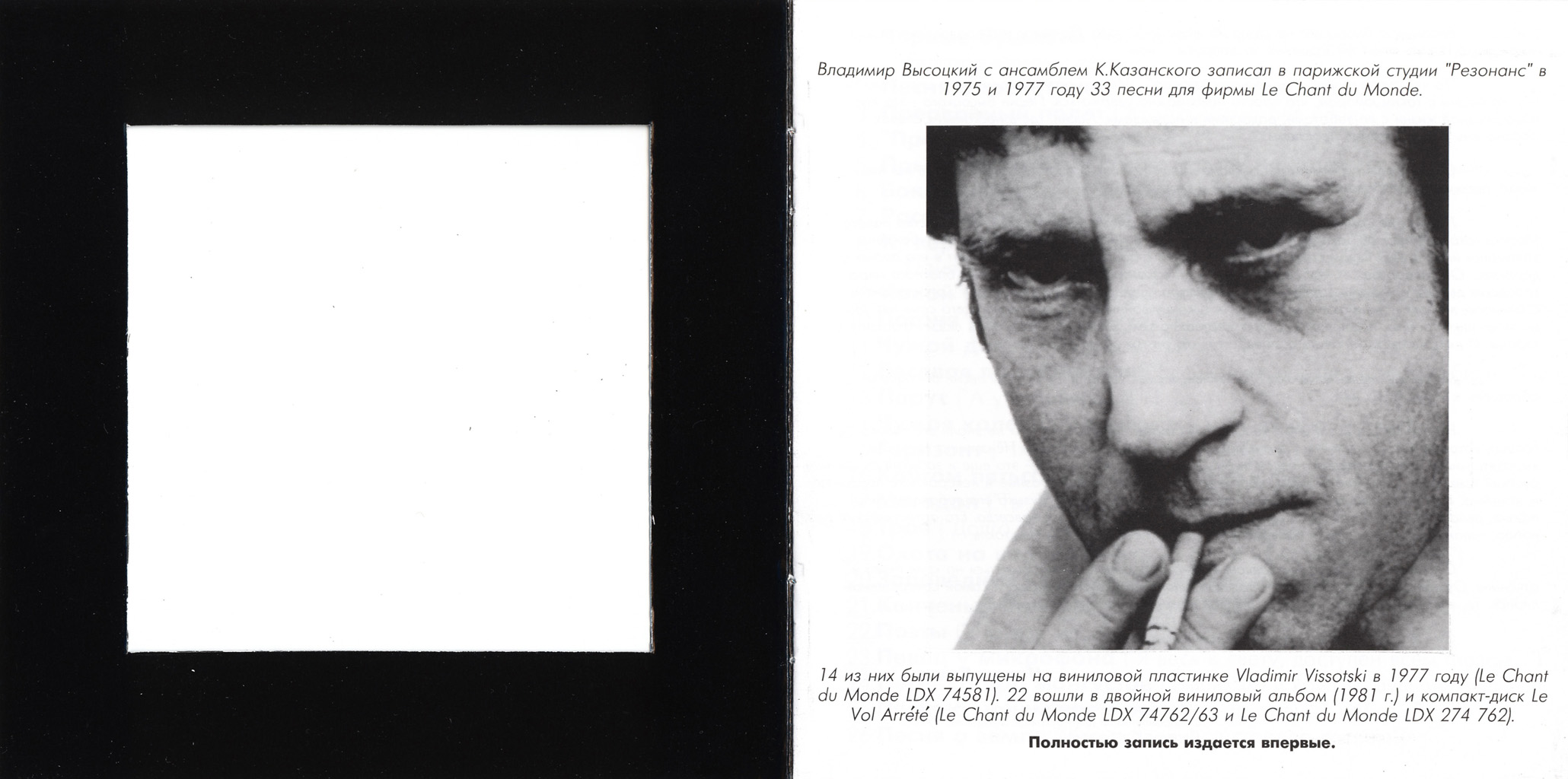► 14 из них были выпущены на виниловой пластинке Vladimir Vissotski в 1977 году (Le Chant du Monde LDX 74581).