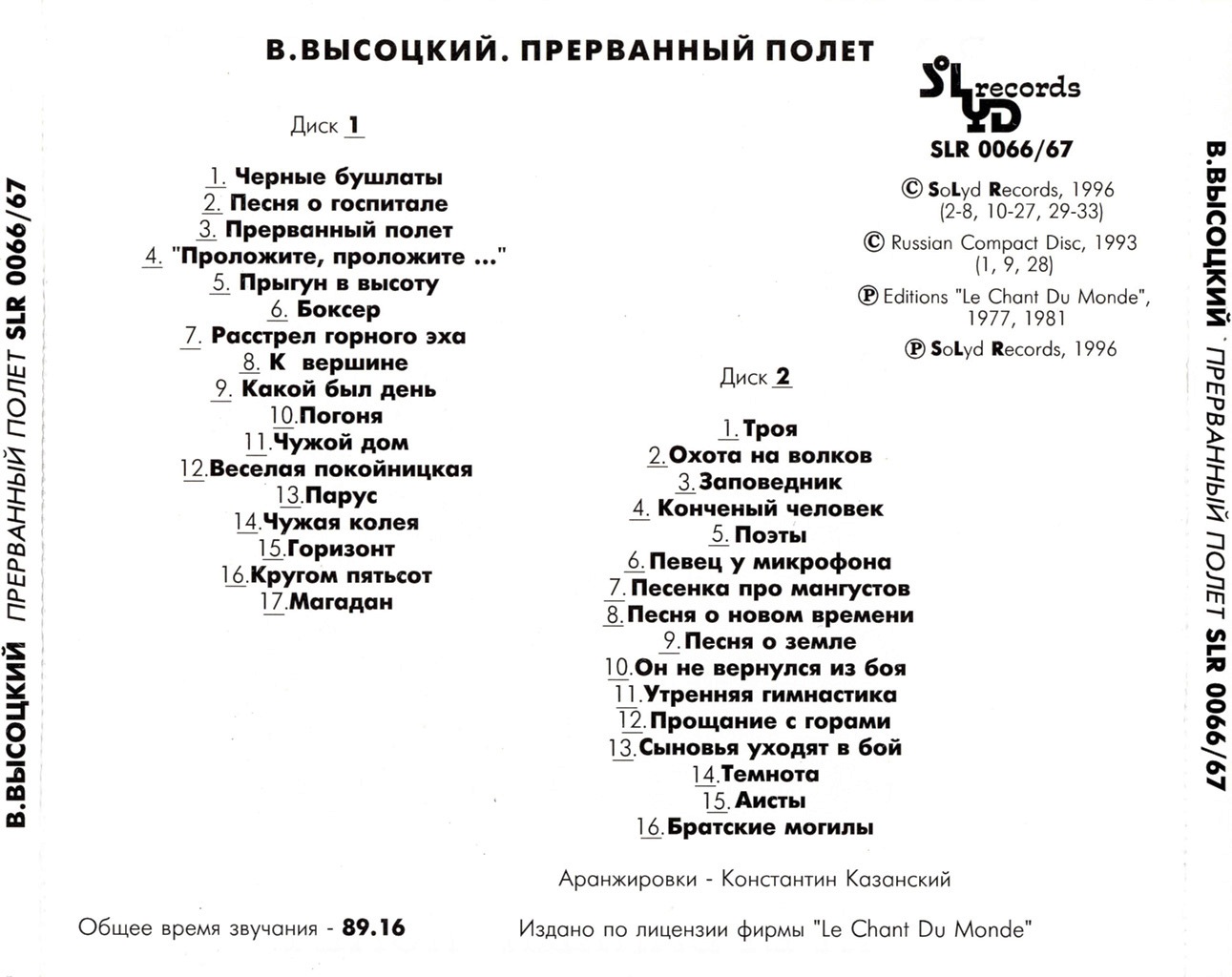 Лейбл: SoLyd Records SLR 0066/67